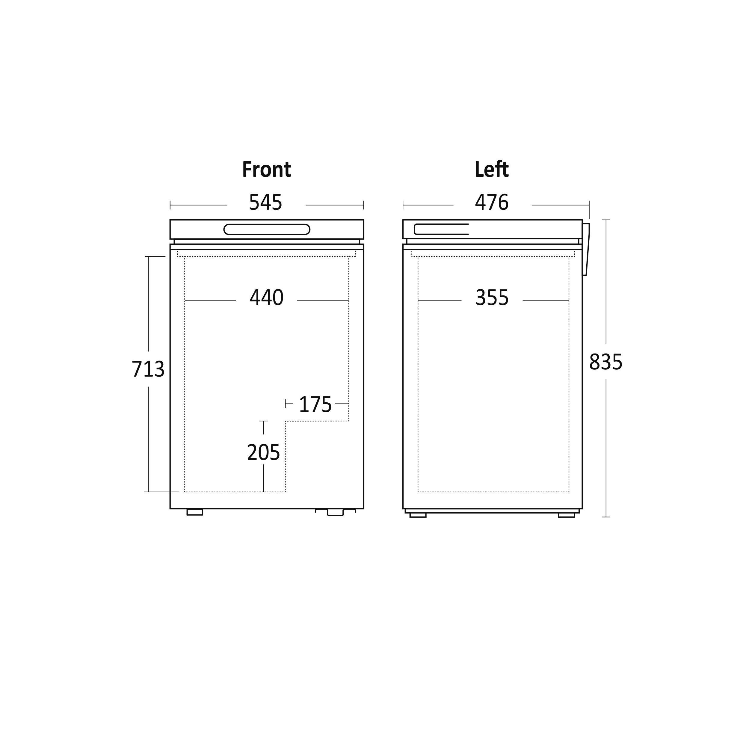 Praktisk kummefryser, der trods sin størrelse har en kapacitet på 99 liter. Boksen har en stærk isolering, som sikrer effektiv indfrysning med lave driftsomkostninger og en indfrysningskapacitet på 6 kg/24 timer.CF100WD er ideel til mindre husholdninger eller som supplement til opbevaring i fryseren. Ud over at give fleksibel kapacitet er fryseboksen også nem at betjene og nem at rengøre.