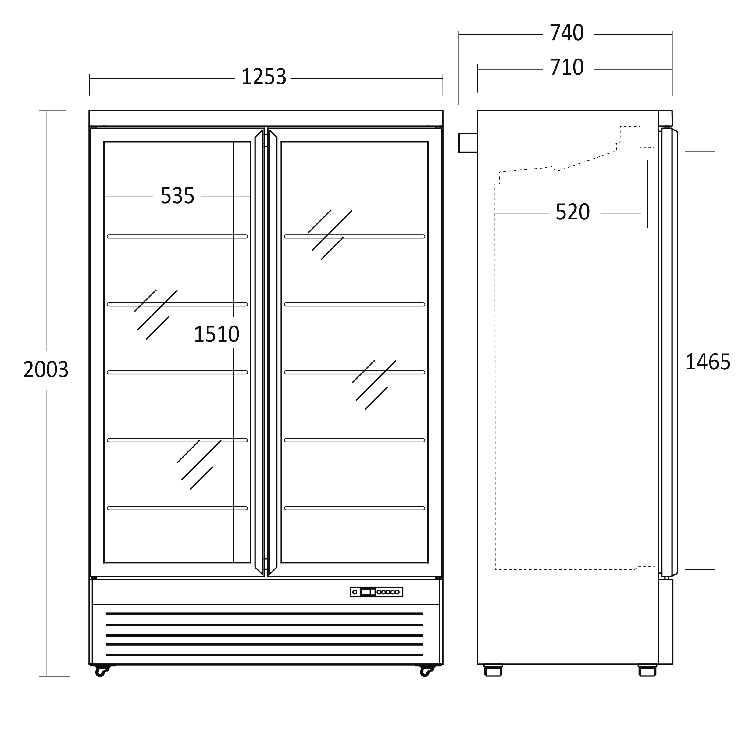 DC1020BB er et stort 2-dørs display køleskab, med hele 809 netto liter kølerum.