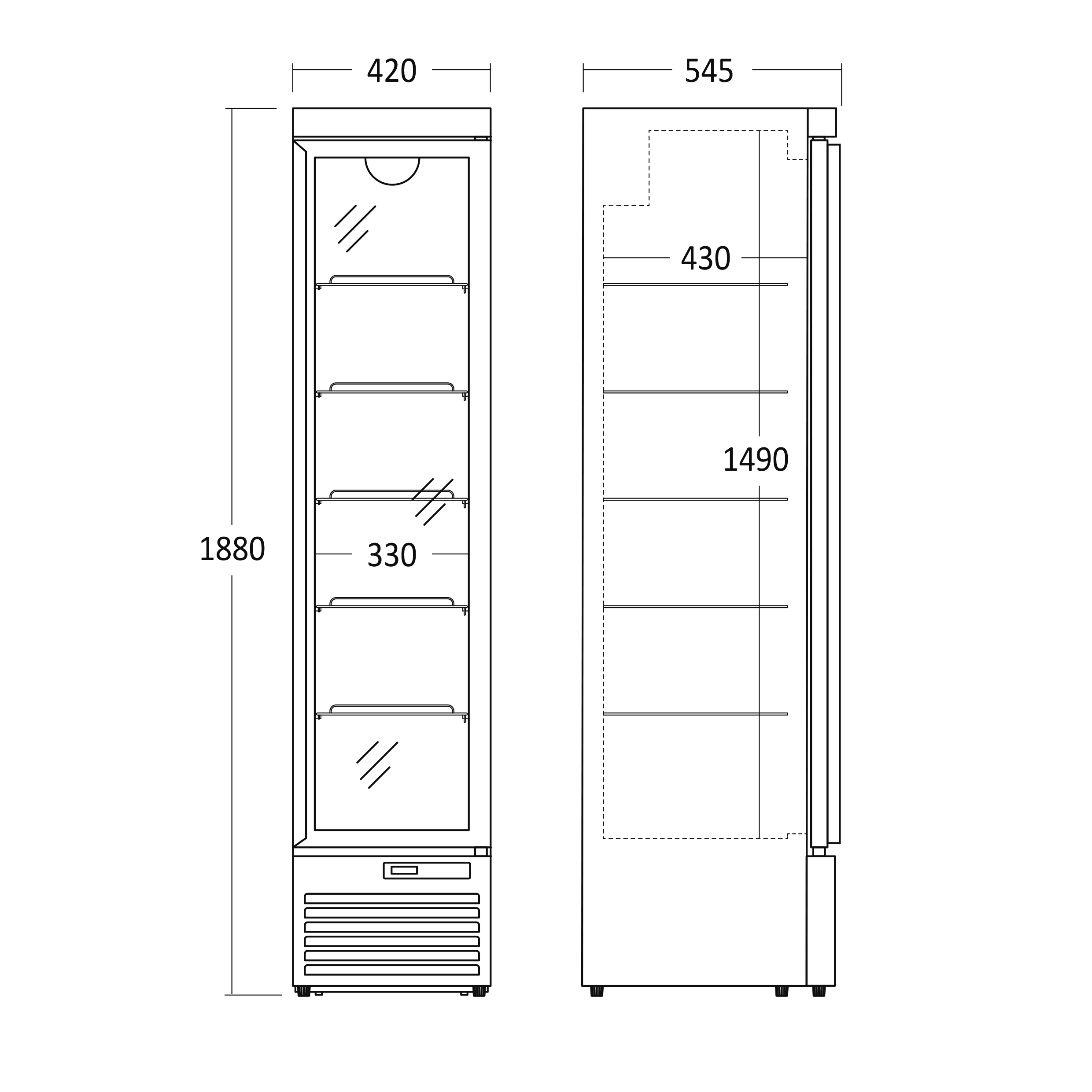 - Produktmål, HxBxD, mm 1880 x 420 x 545