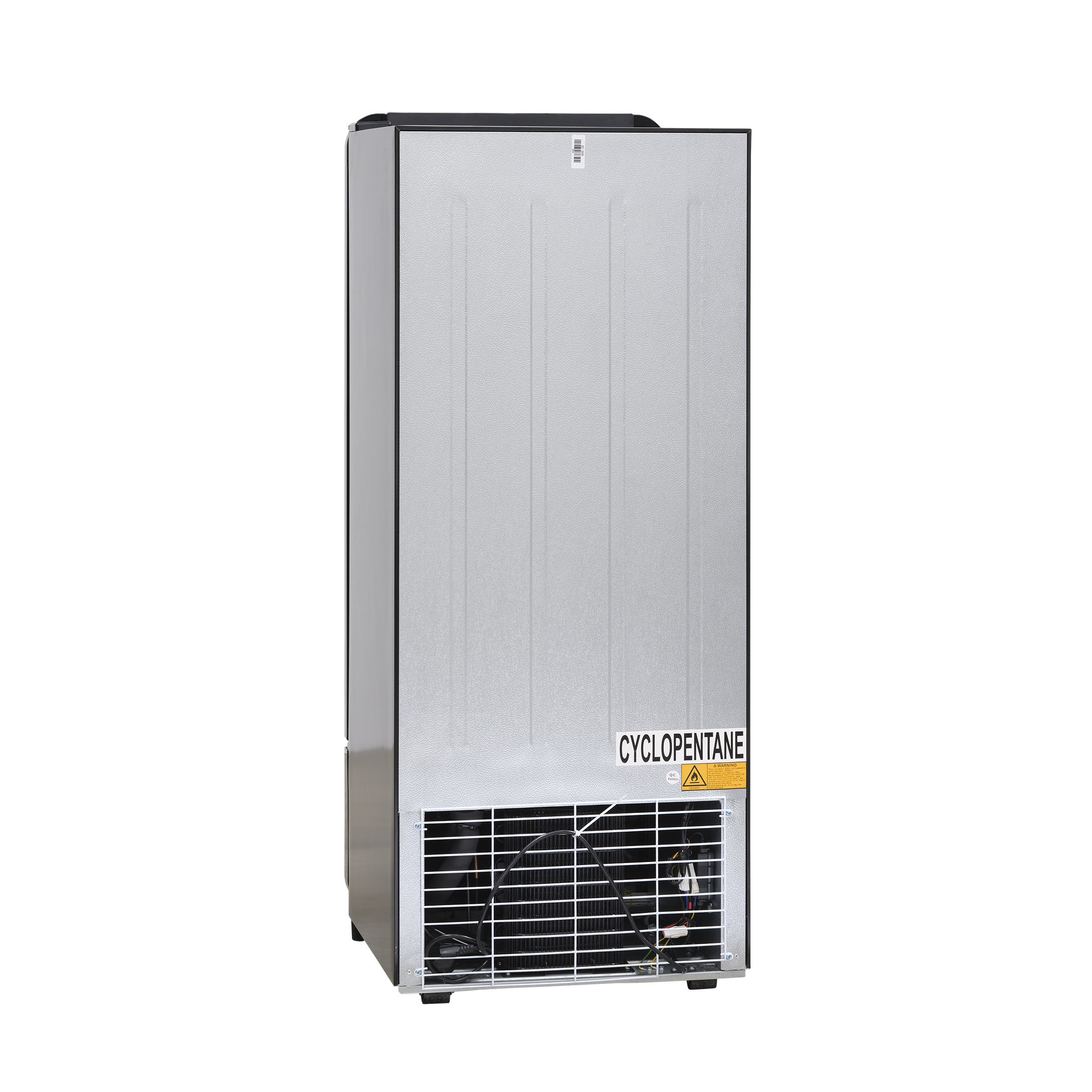 Skabet har ventileret køling, som sikrer hurtig afkøling og en jævn temperatur i hele skabet. Køleskabet er mekanisk styret, og det er nemt at justere temperaturen inde i skabet.