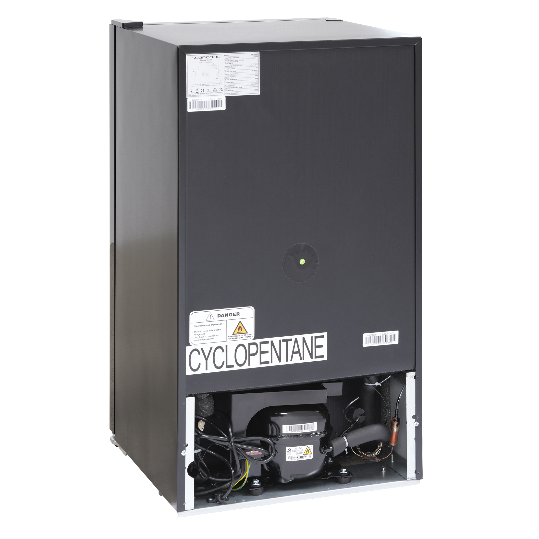 DC98BB er et 1-dørs displaykøleskab med 88 nettoliter køleplads.