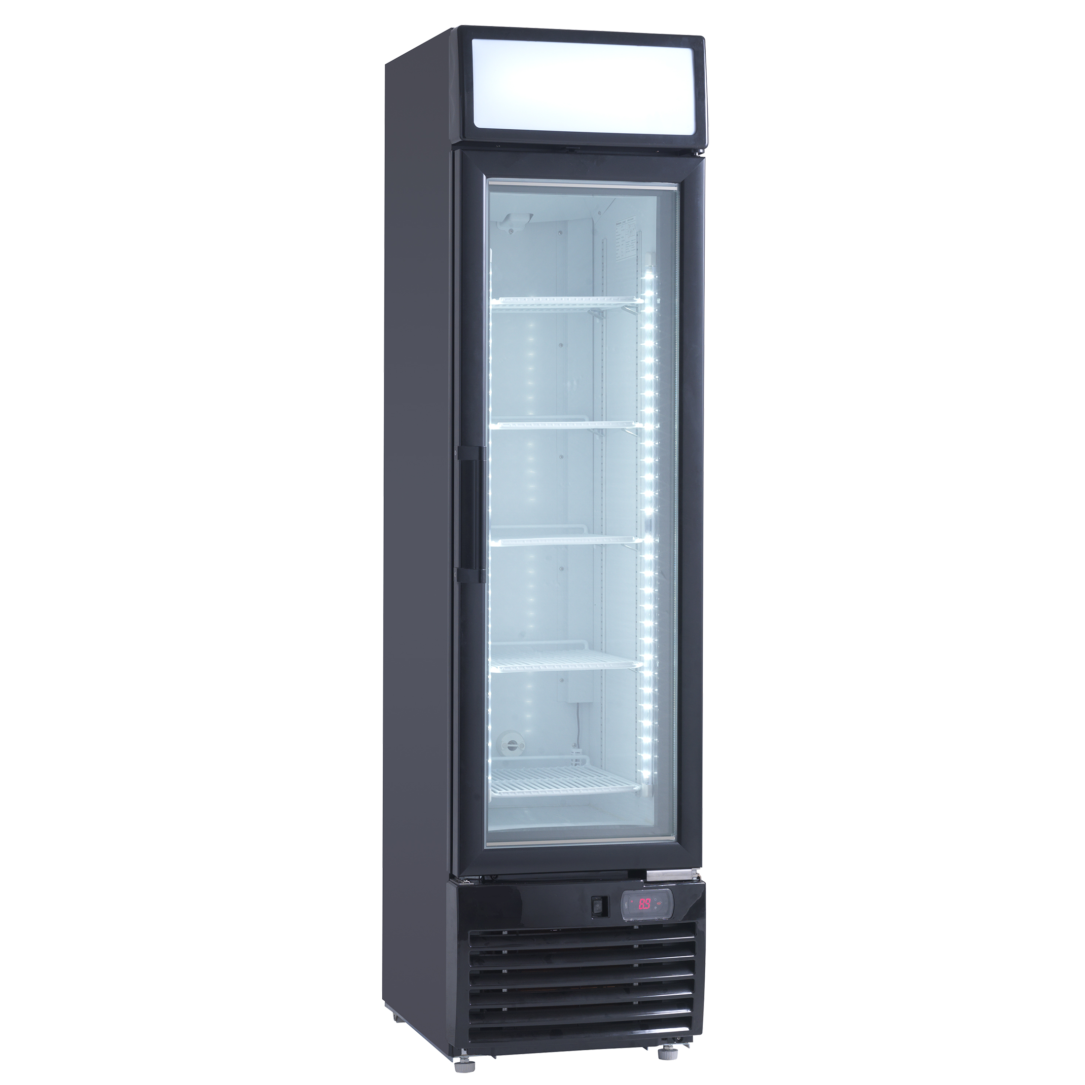 2 lodrette energibesparende LED-lys i fronten giver et godt lys og repræsenterer varerne pænt.