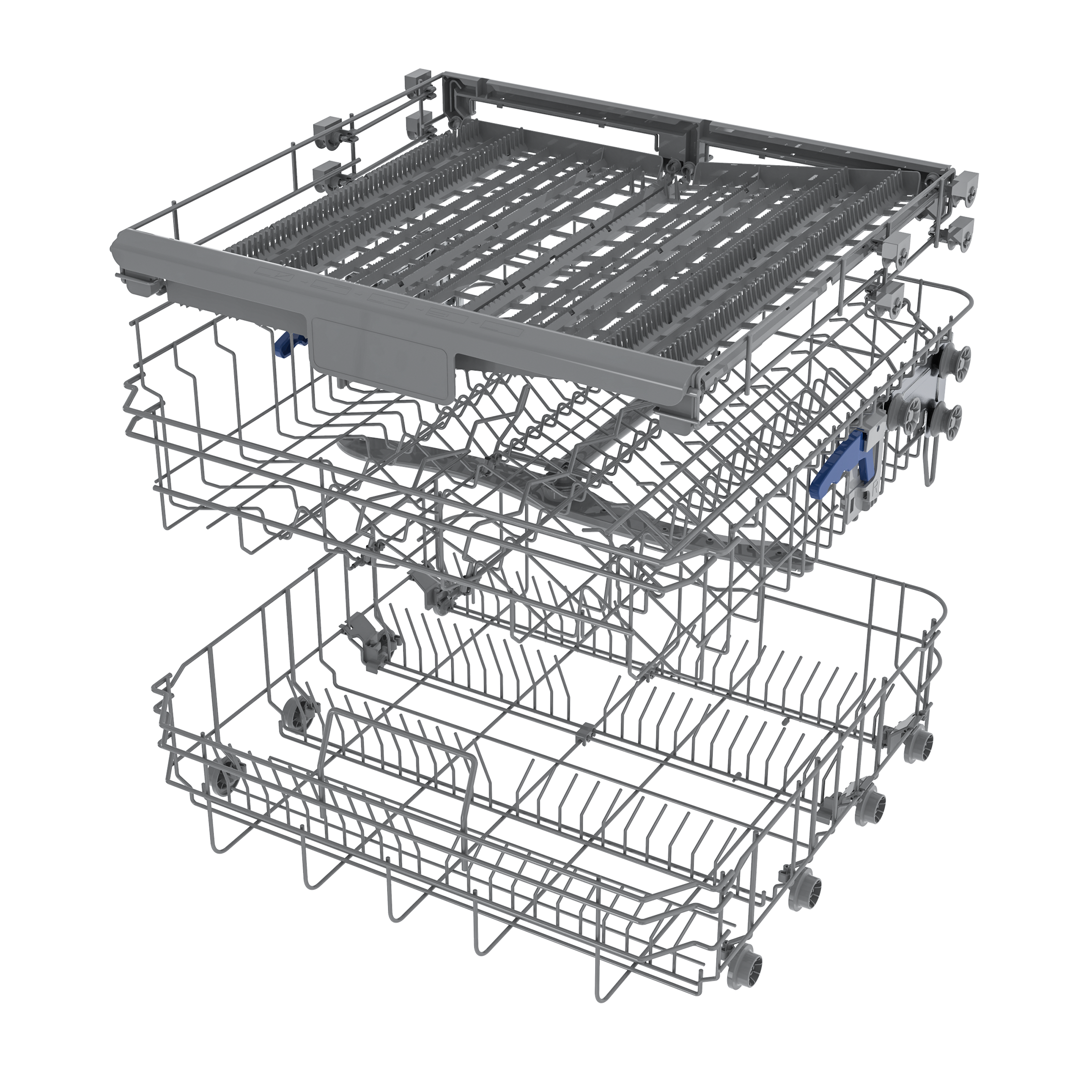 Øverste bestikbakke giver dig ekstra plads i underkurven, og da bestikket ligger adskilt, og aldrig klynger sammen, opnås et bedre vaskeresultat og ridser undgås også. Ud over at bestik bliver mere rent i denne bakke, så er der også en hygiejnisk fordel ved tømning af bestik, da man ikke berører spisehovederne, som man gør ved standard bestik kurve. Ydermere kan bestikbakken også skubbes sammen, så der bliver plads til høje glas i den mellemste kurv. Den øverste kurv giver ikke bare plads til bestik, men også til grydeskeer, salatbestik og mindre servicedele, som f.eks. espressokopper.