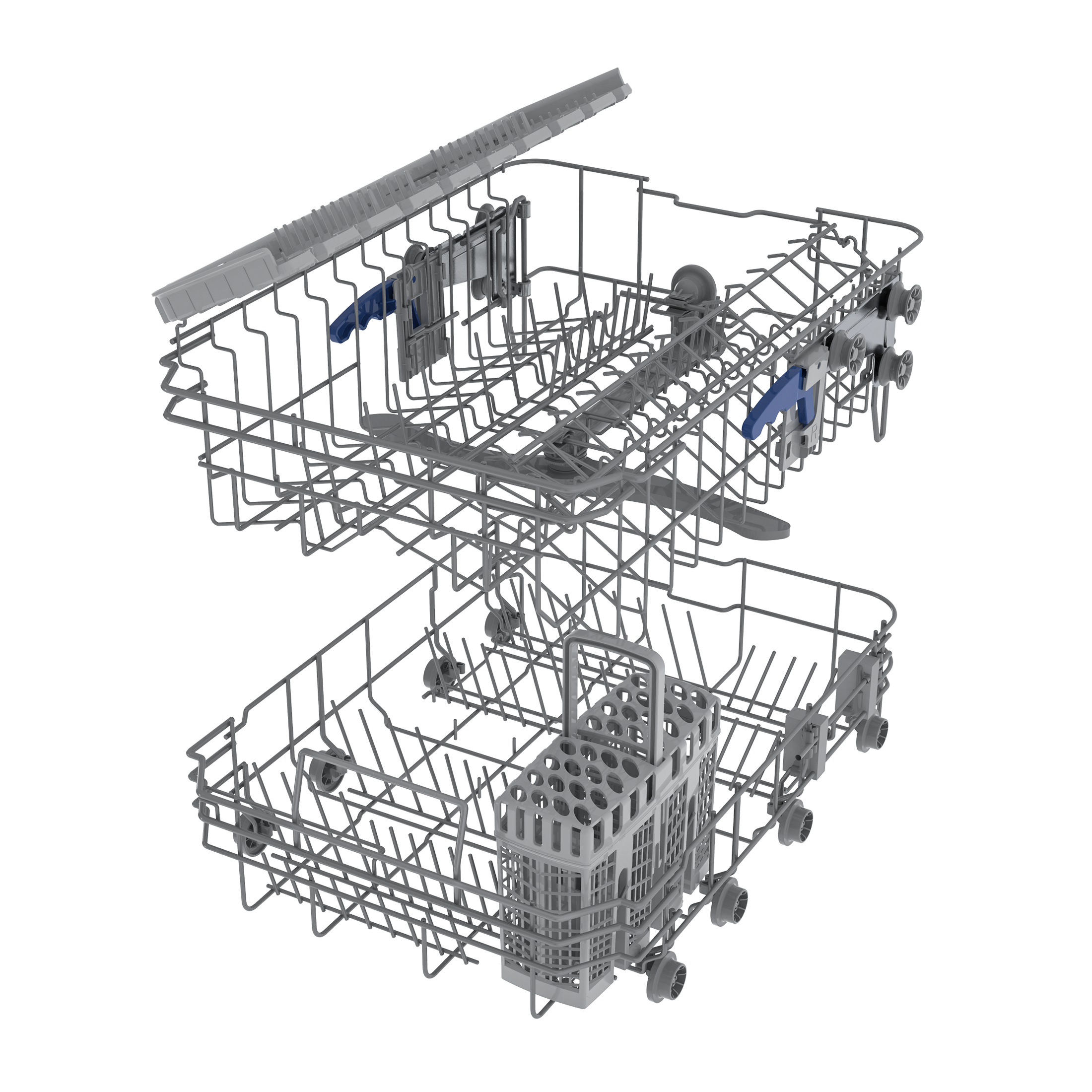 Den øverste kurv kan justeres i højden, så vinglas også kan være i kurven. I den nederste kurv kan tallerkenrækkerne lægges ned, hvis du har brug for pladsen til store fade, skåle og gryder. I nederste kurv medfølger en bestikkurv, som kan anvendes med eller uden `låg´. Du kan derfor selv vælge om dit bestik skal vaskes ekstra grundigt, ved at placere det enkeltvis i de forudbestemte huller der er i `låget´, eller om du vil placere dit bestik i de store rum.