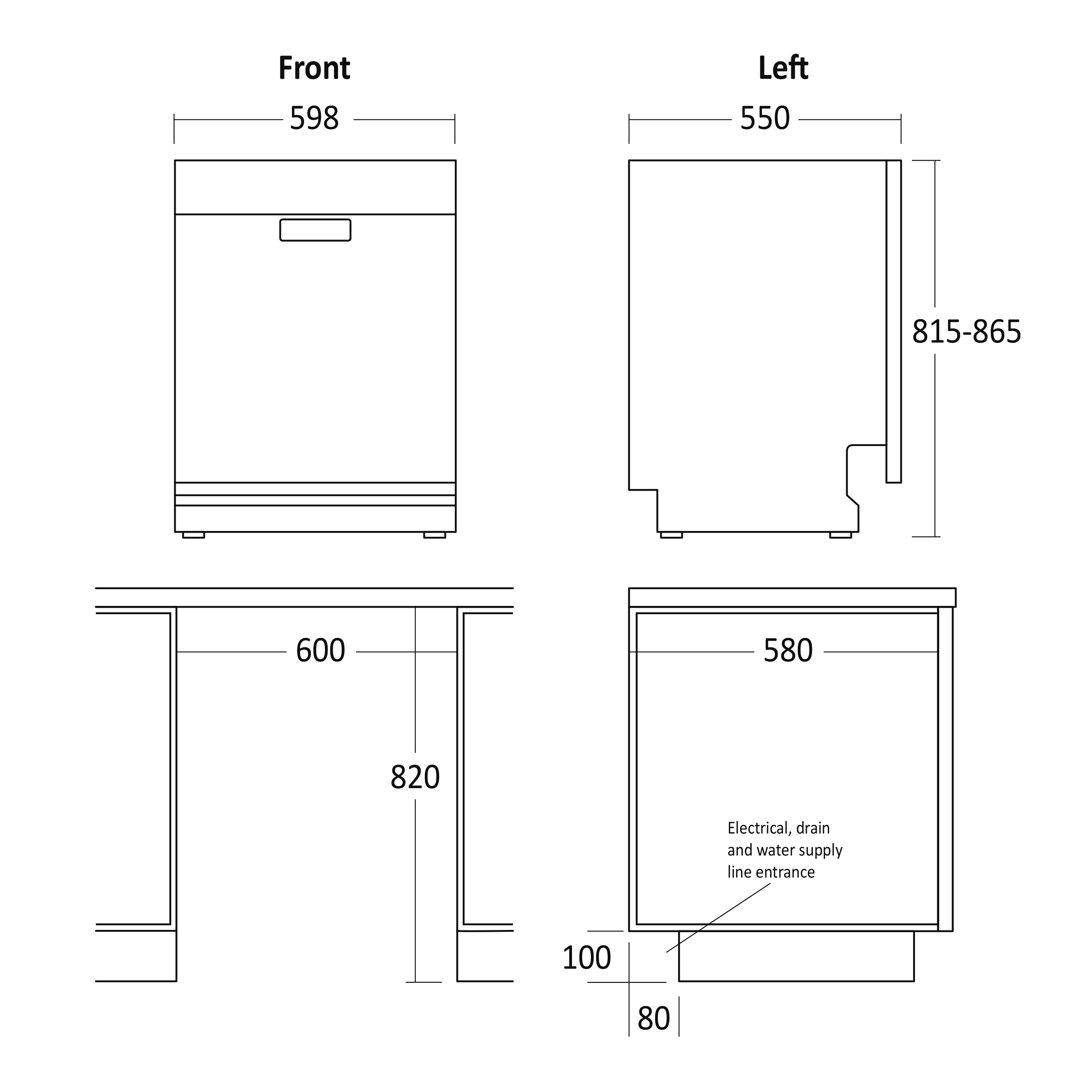 Indbygningsmål, HxBxD, mm: 820 x 600 x 580