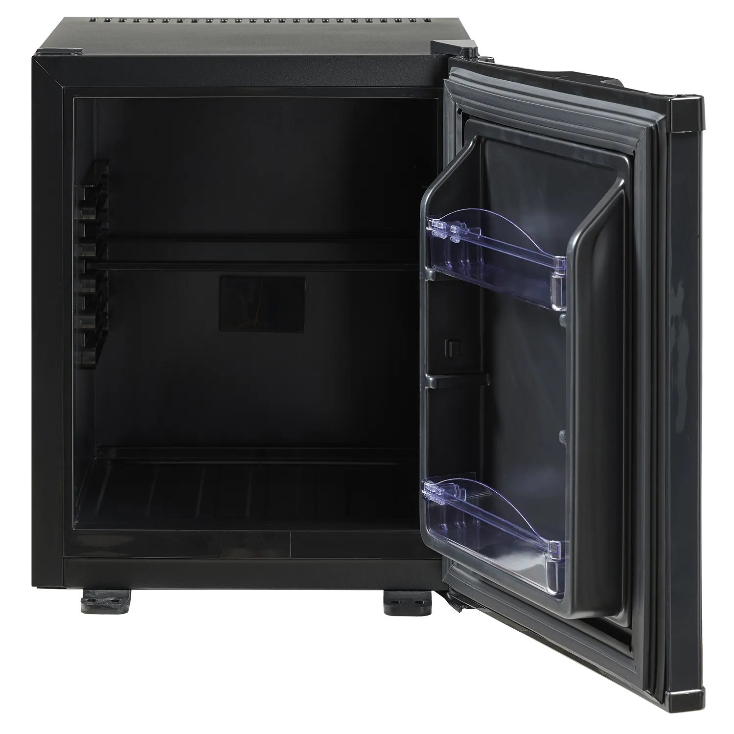 The minibar has a 32 liter cooling compartment with the ability to cool down to a temperature between 6-8 °C. The cabinet has automatic defrosting and adjustable feet in the front, so the cabinet can stand flat on any surface.