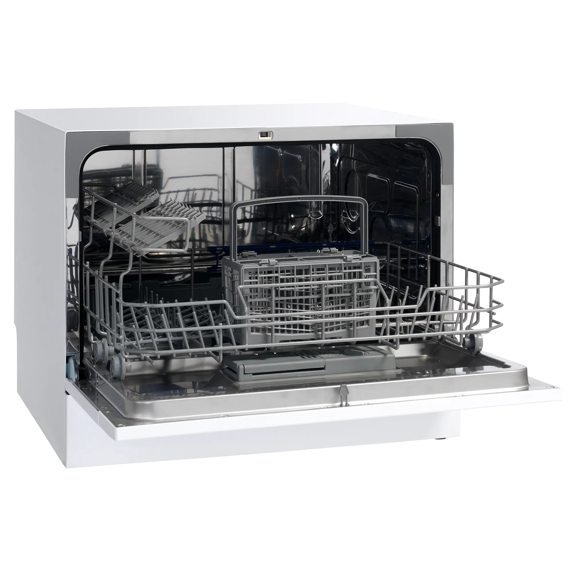 SFO 2203 W is a white table-top dishwasher that is ideal for smaller households, holiday homes, holiday apartments, etc. where it is not possible to do without a kitchen module for a standard dishwasher. The machine washes up to 6 place settings, with very low water and energy consumption.