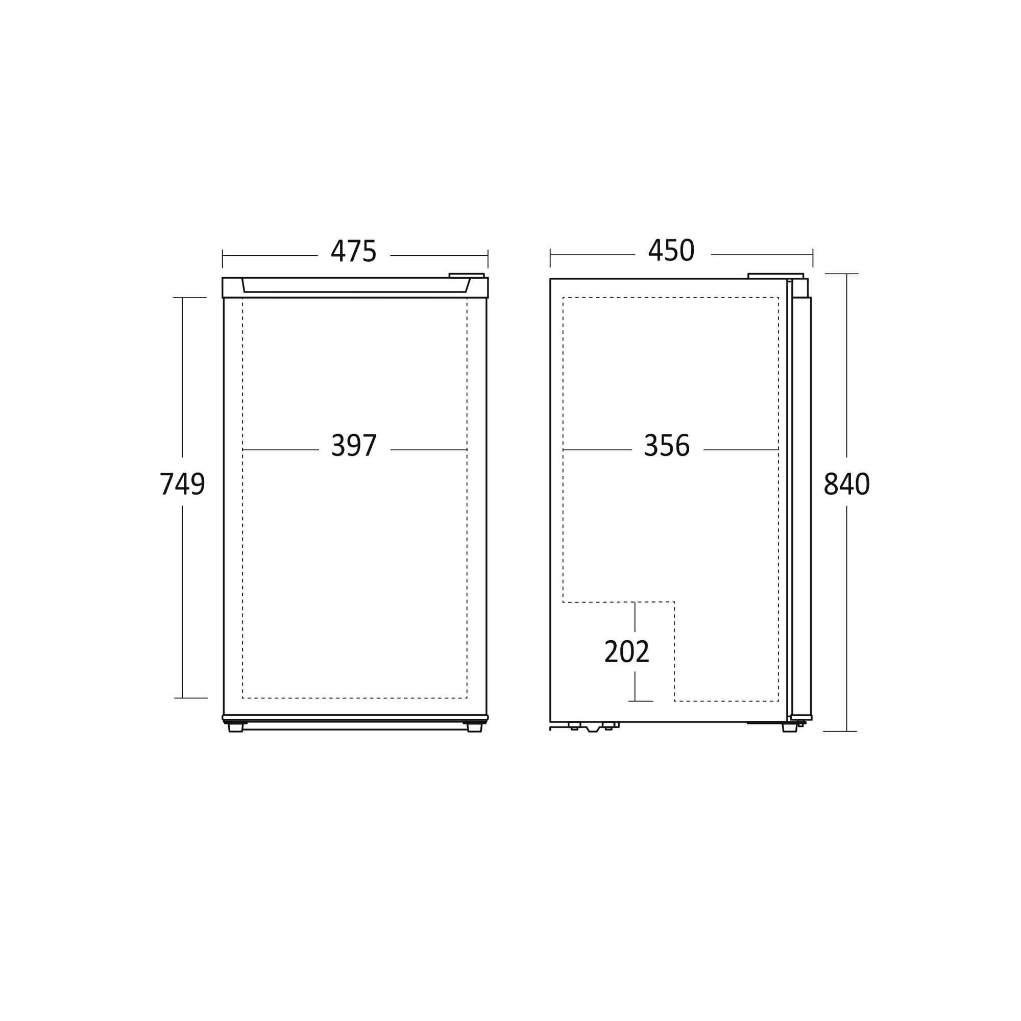 SKS92WE dimensions W: 475 x D: 448 are ideal for small homes, camping, etc.