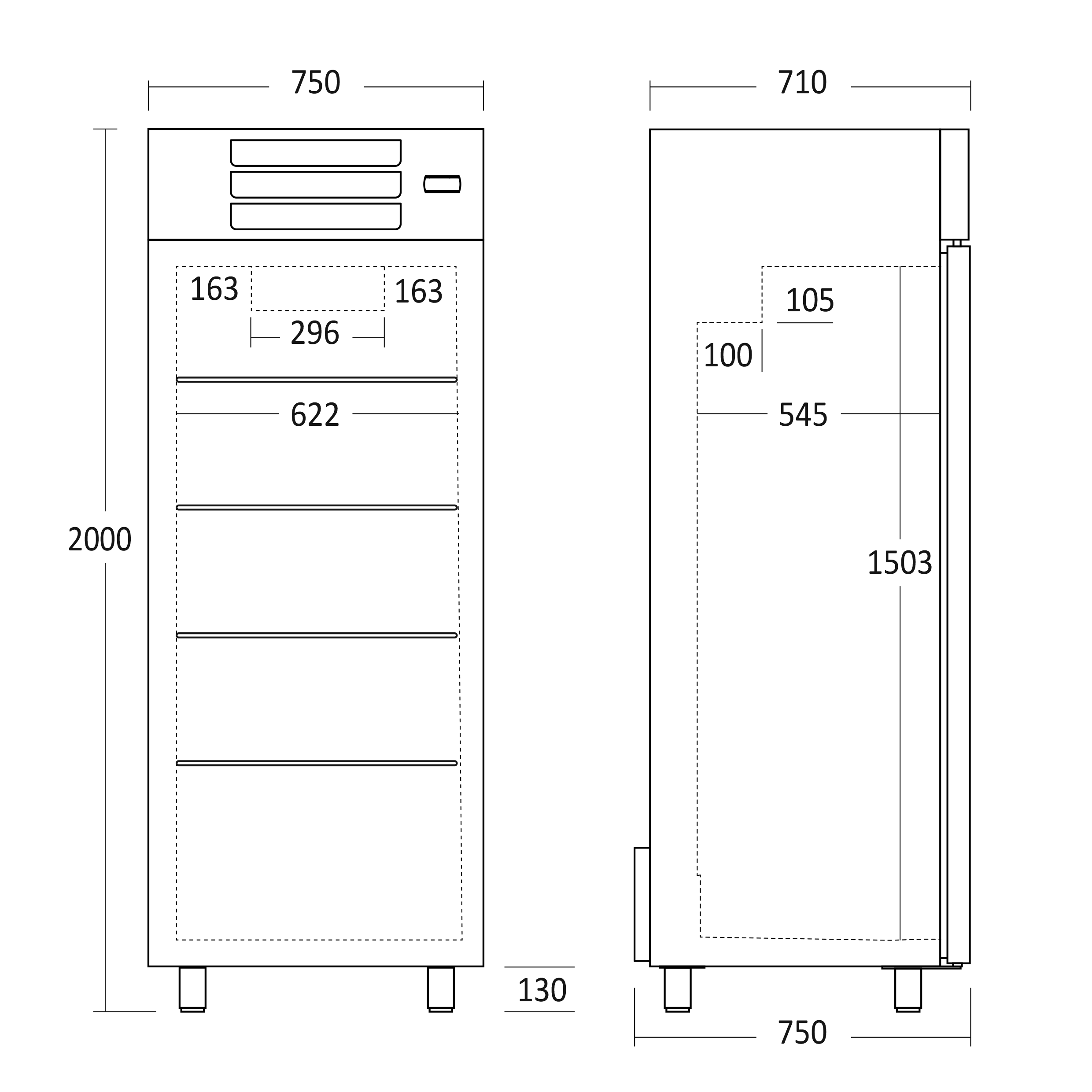Indvendige mål, HxBxD, mm: 1503 x 622 x 545