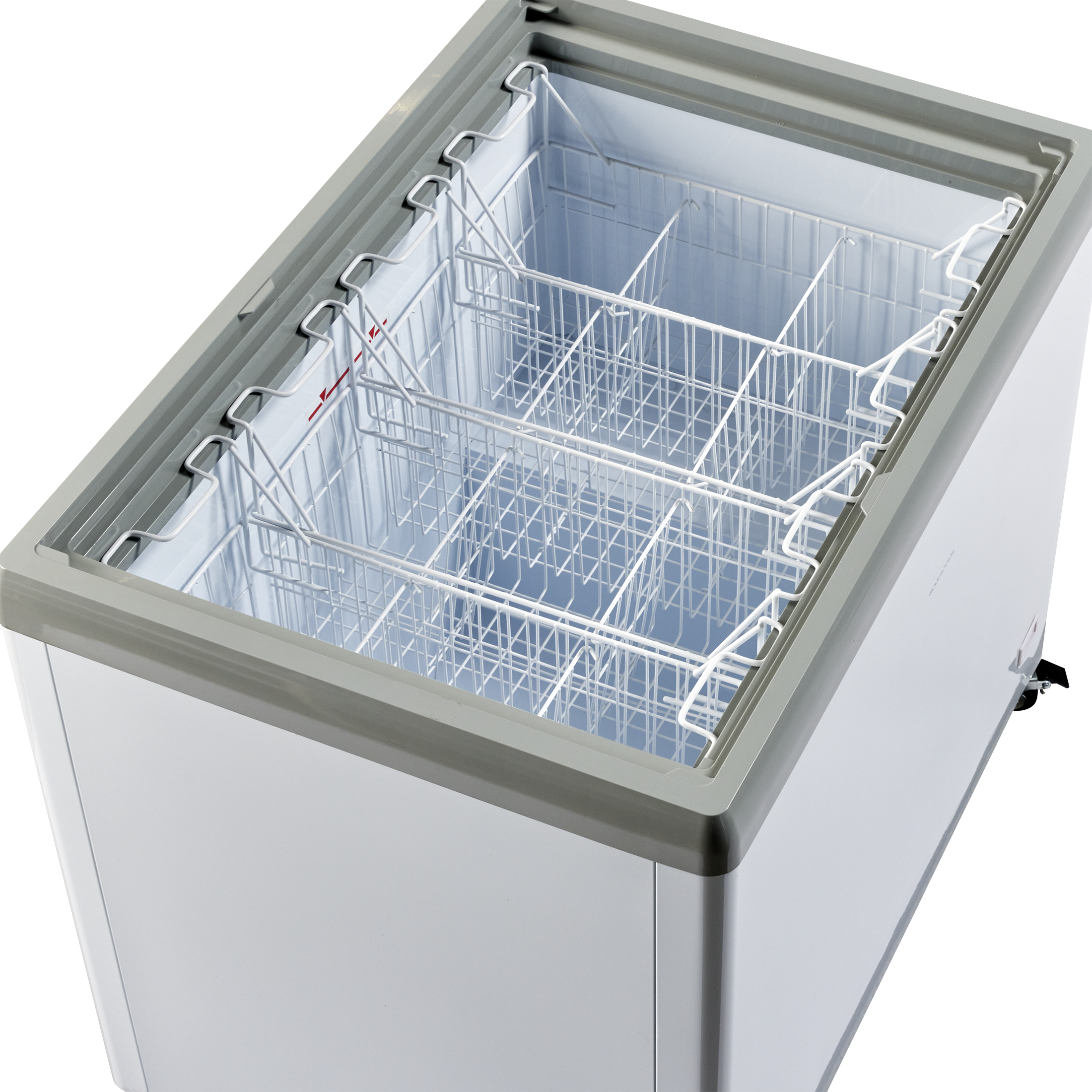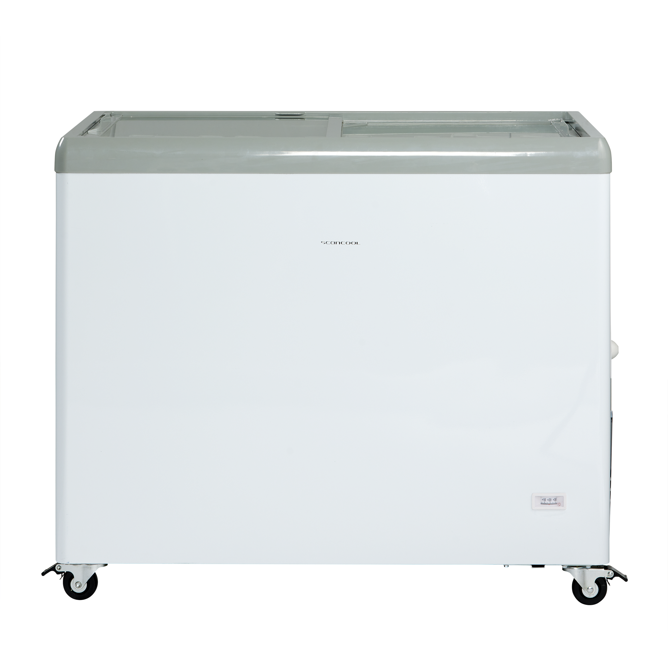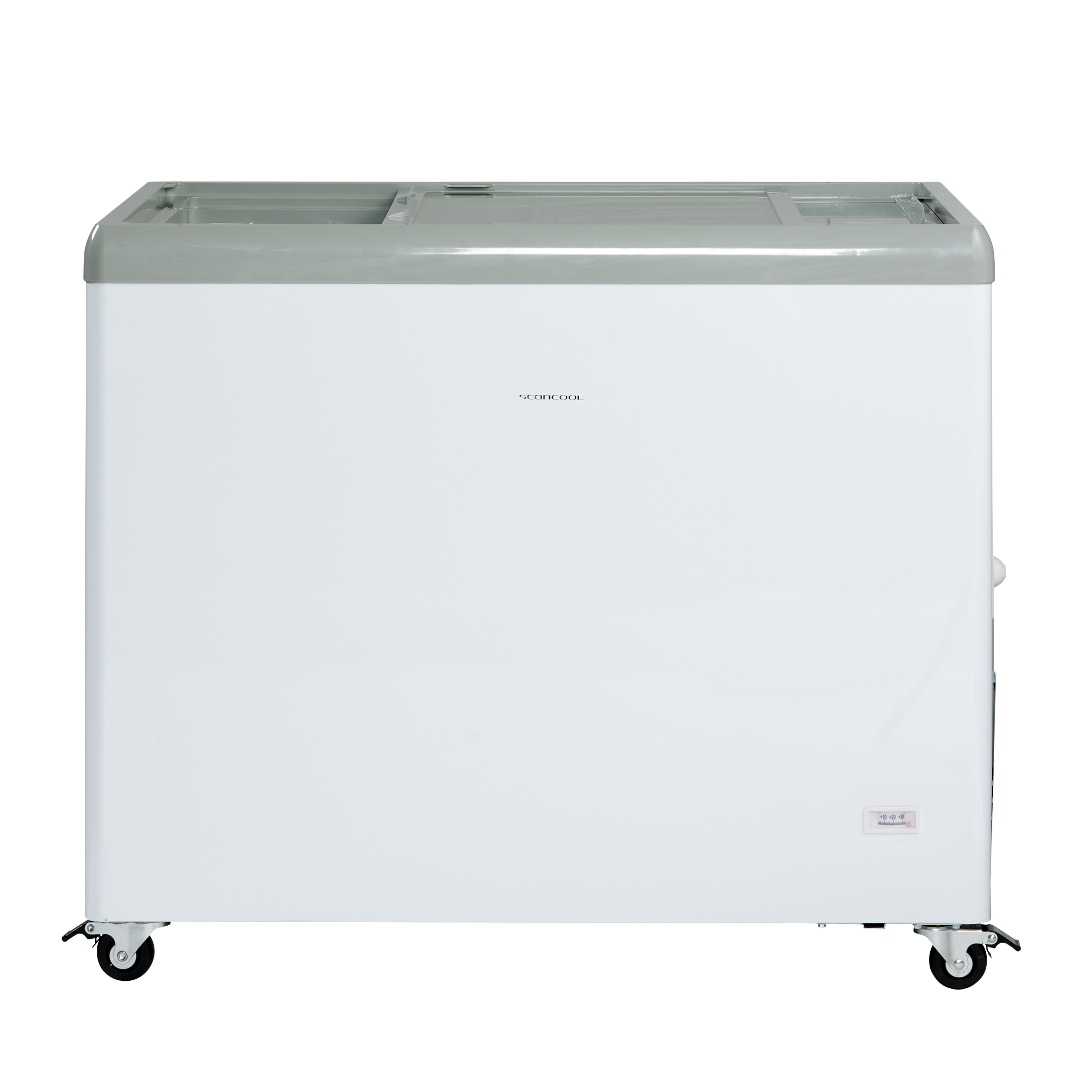 Iscremefryseren leveres med flade transparente skydelåg med integreret greb som holder ekstra på kulden.