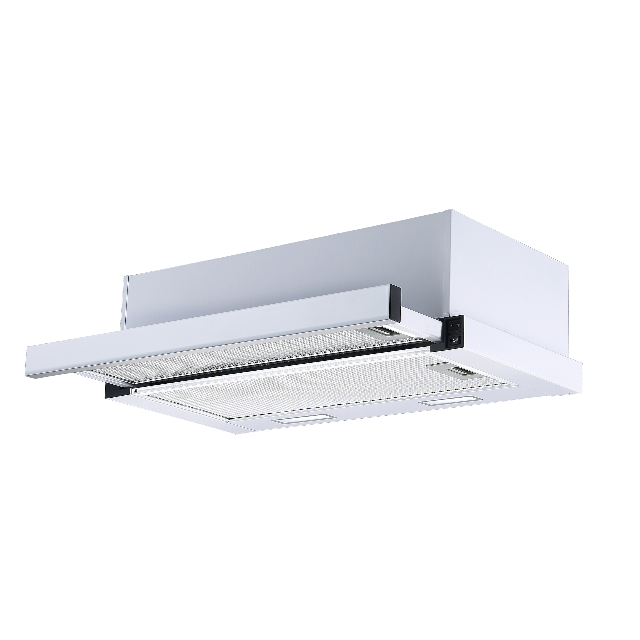 Enkel og traditionel 60 cm. emhætte med udtræk som holder dampen tilbage.