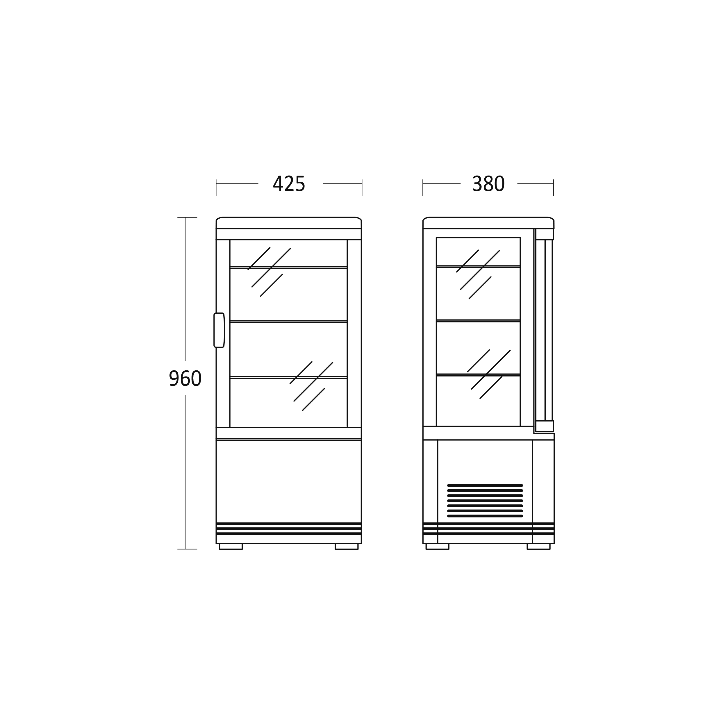 Til det formål er RT82BE perfekt til at fremvise varer på en indbydende måde i bagerier, delikatesseforretninger, caféer, supermarkeder, tankstationer og specialbutikker.