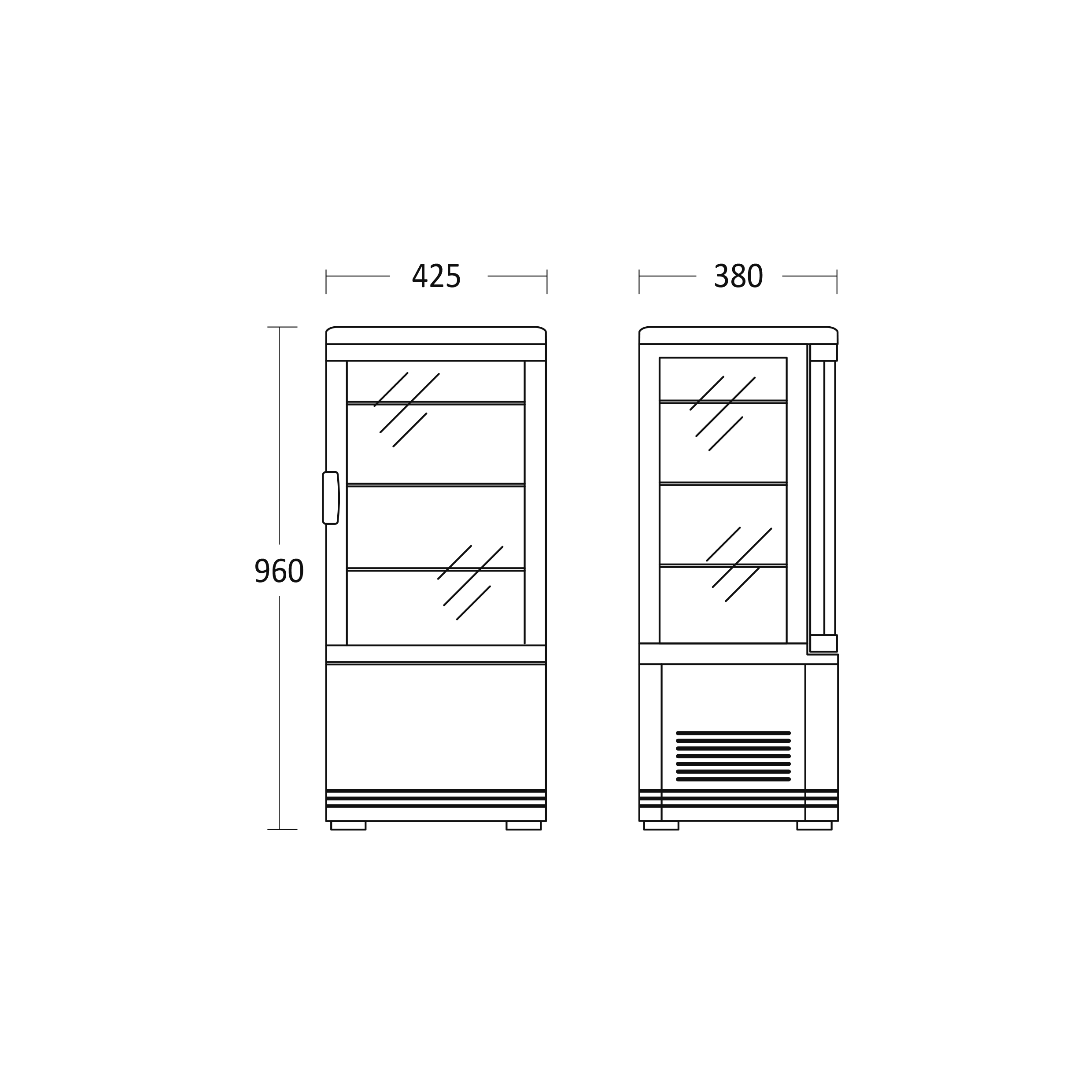 Køleren har 4 fødder, 3 justerbare hylder og dørlås. Impulskøleren leveres med dobbelt glas på alle fire sider som holder ekstra på kulden. Kondensator på bagsiden gør vedligeholdelsen nem.