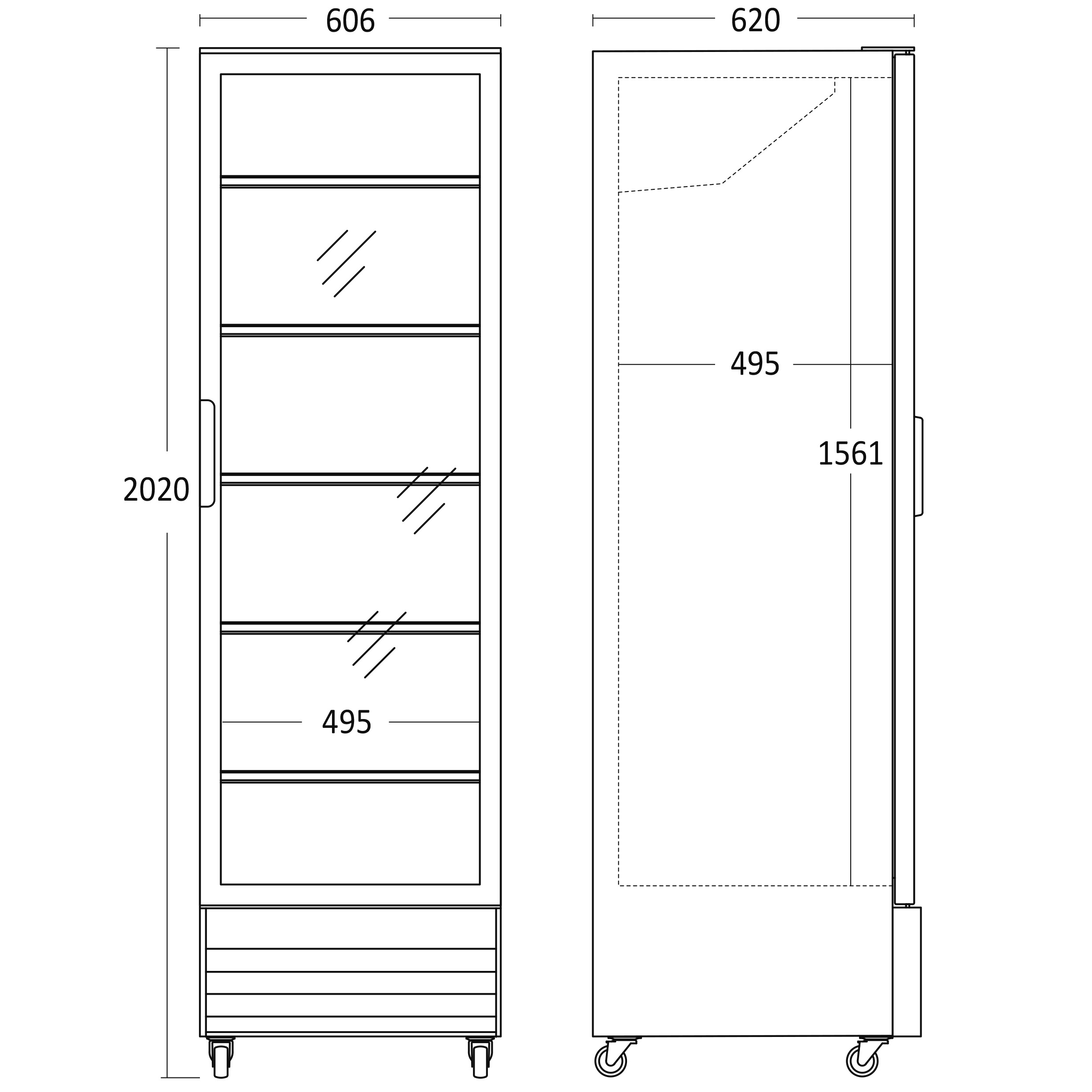 Indvendige mål, HxBxD, mm: 1561 x 495 x 495