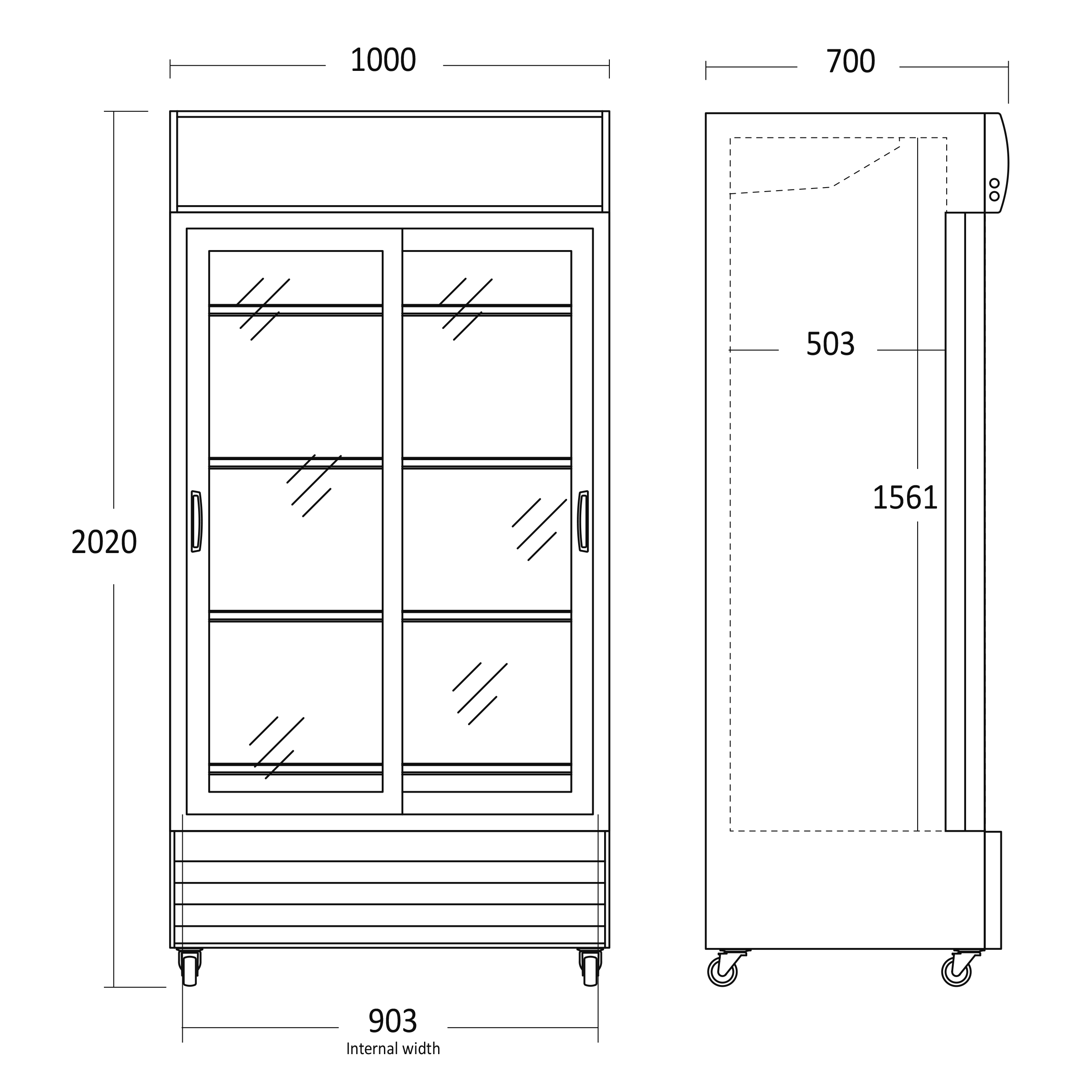 Indvendige mål, HxBxD, mm: 1561,5 x 903 x 503