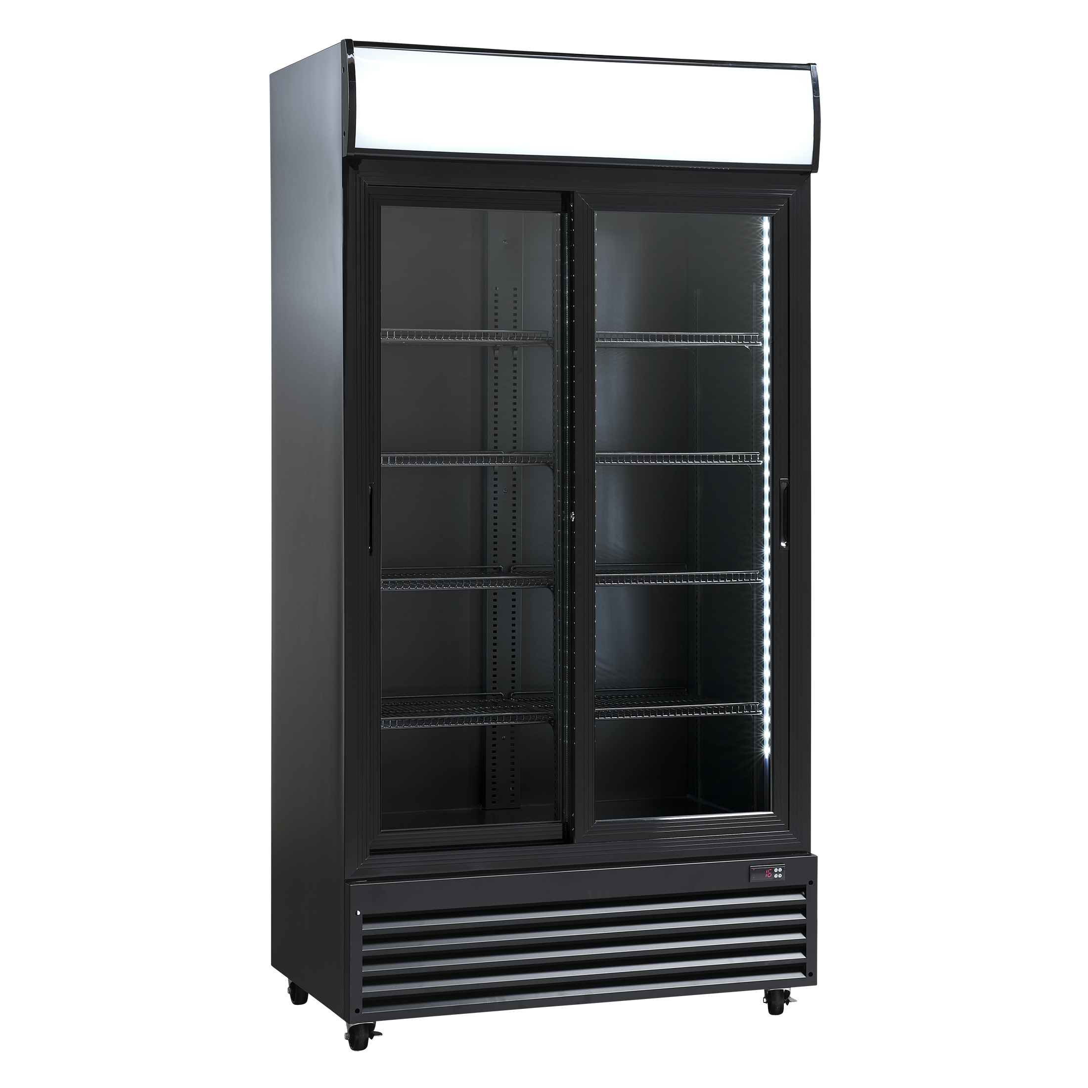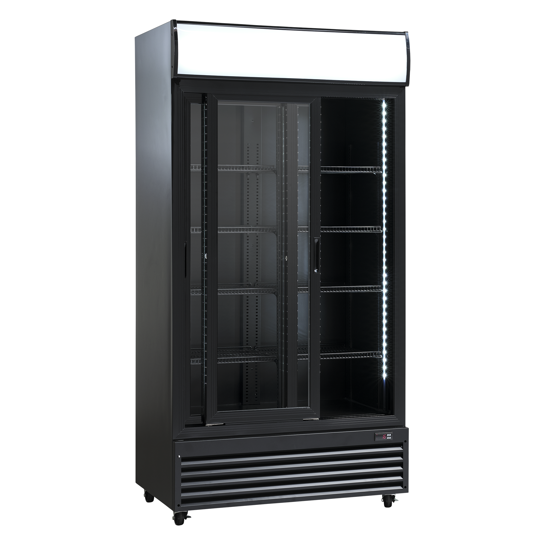 SD 802 BSLE er et stort 2-dørs display køleskab, med 690 netto liter kølerum.