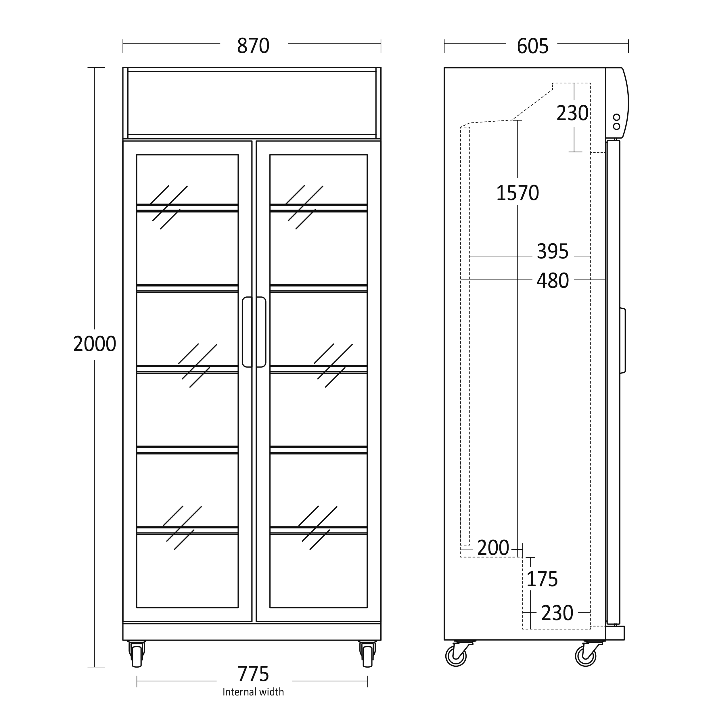 Indvendige mål, HxBxD, mm: 1818 x 730 x 480