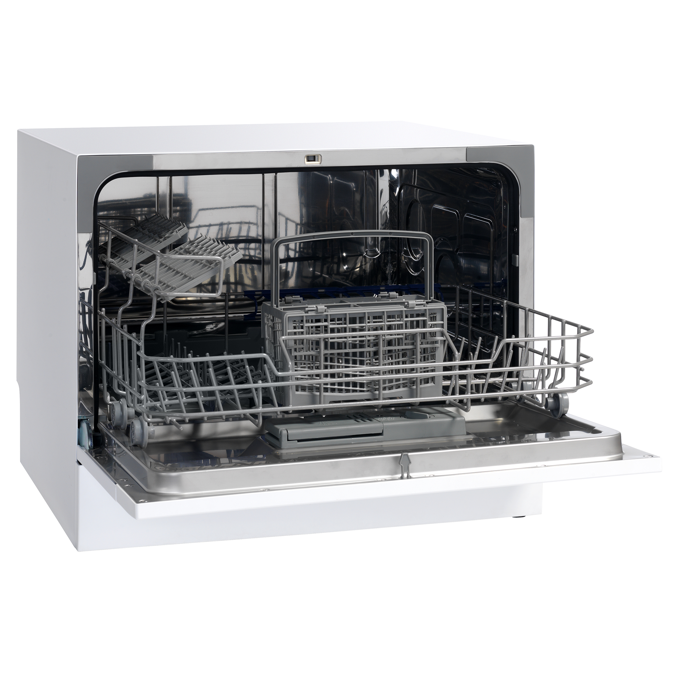 SFO 2203 W er en hvid bordopvaskemaskine som er ideel til mindre husholdninger, sommerhuse, ferielejligheder m.fl. hvor det ikke er muligt at undvære et køkkenmodul til en standard opvaskemaskine. Maskinen vasker op til 6 kuverter, med et meget lavt vand og energiforbrug.