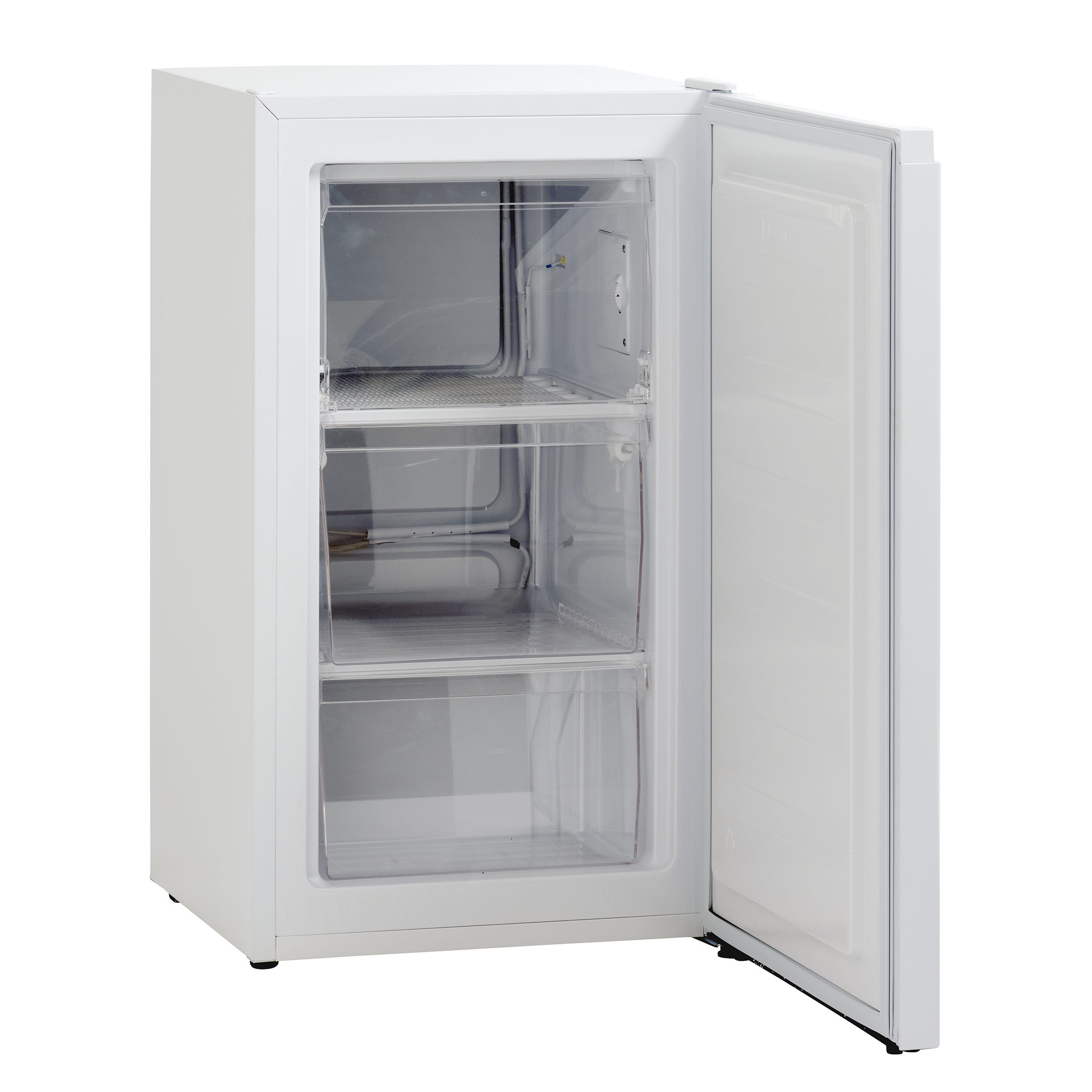 Kompakt og praktisk fryseskab med 61 liter kapacitet og statisk frys. SFS 61 W fryser passer fint i selv de små rum, såsom kollegieværelset eller sommerhuset, og er også et perfekt supplement til at opnå ekstra frysekapacitet, hvis et køle-/fryseskab ikke længere er nok i husstanden. Fryserens øverste hylde har en fryseklap og under den er der to transparente fryseskuffer. Det fritstående fryseskab kommer med justerbare fødder, så det kan stå plant på alle underlag. Skabsdøren åbnes til højre, men døren kan også vendes, dermed er skabet fleksibelt at placere i alle rum.