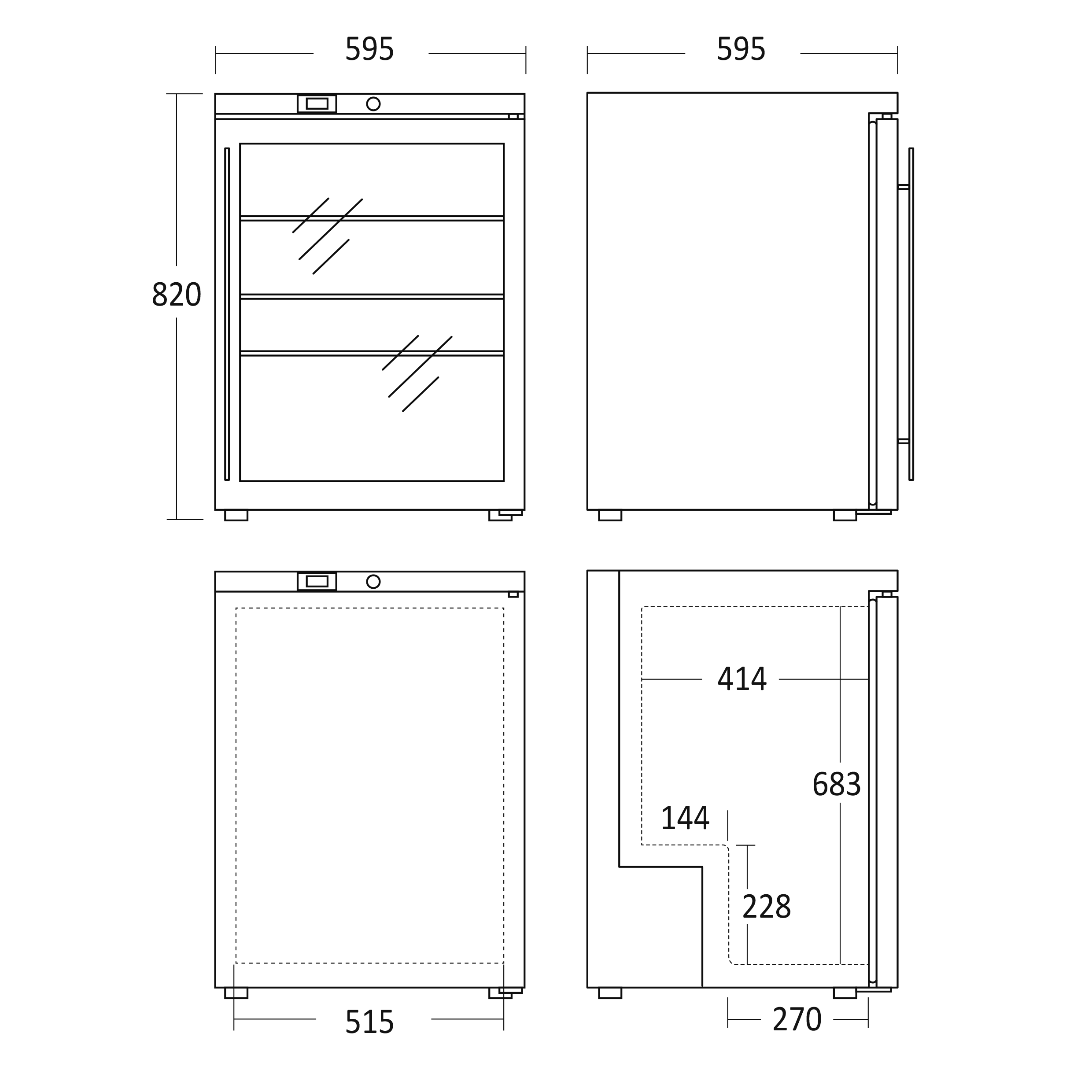 82 cm i højden giver mulighed for at bygge skabet under et bord. Temperatur område mellem 0-10 °C.