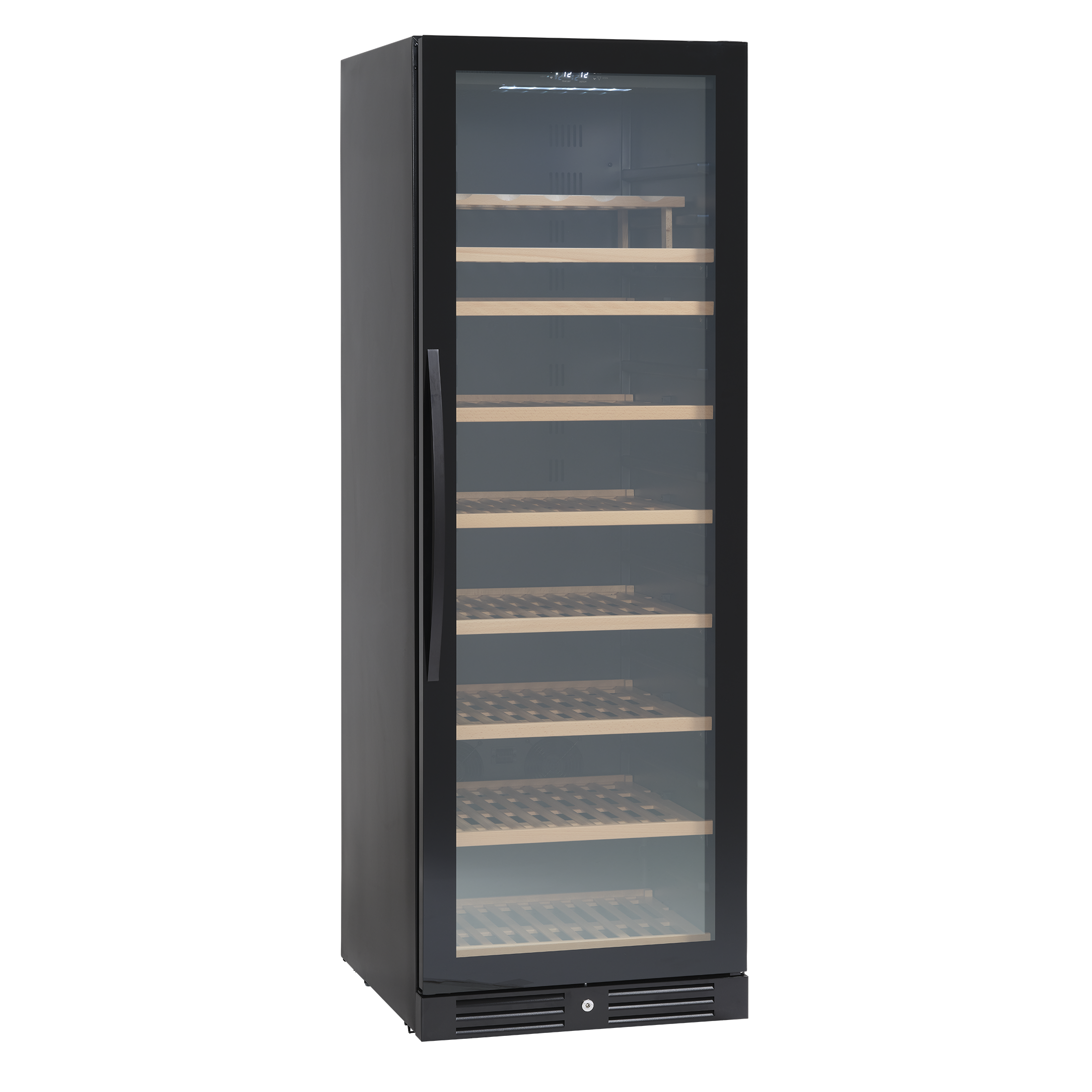 1 horisontalt LED lys giver et godt lys og repræsenterer vinen flot. Skabet har intelligent luftcirkulationssystem, som sikrer perfekt ventileret, anti-vibrationskøling i hele skabet.