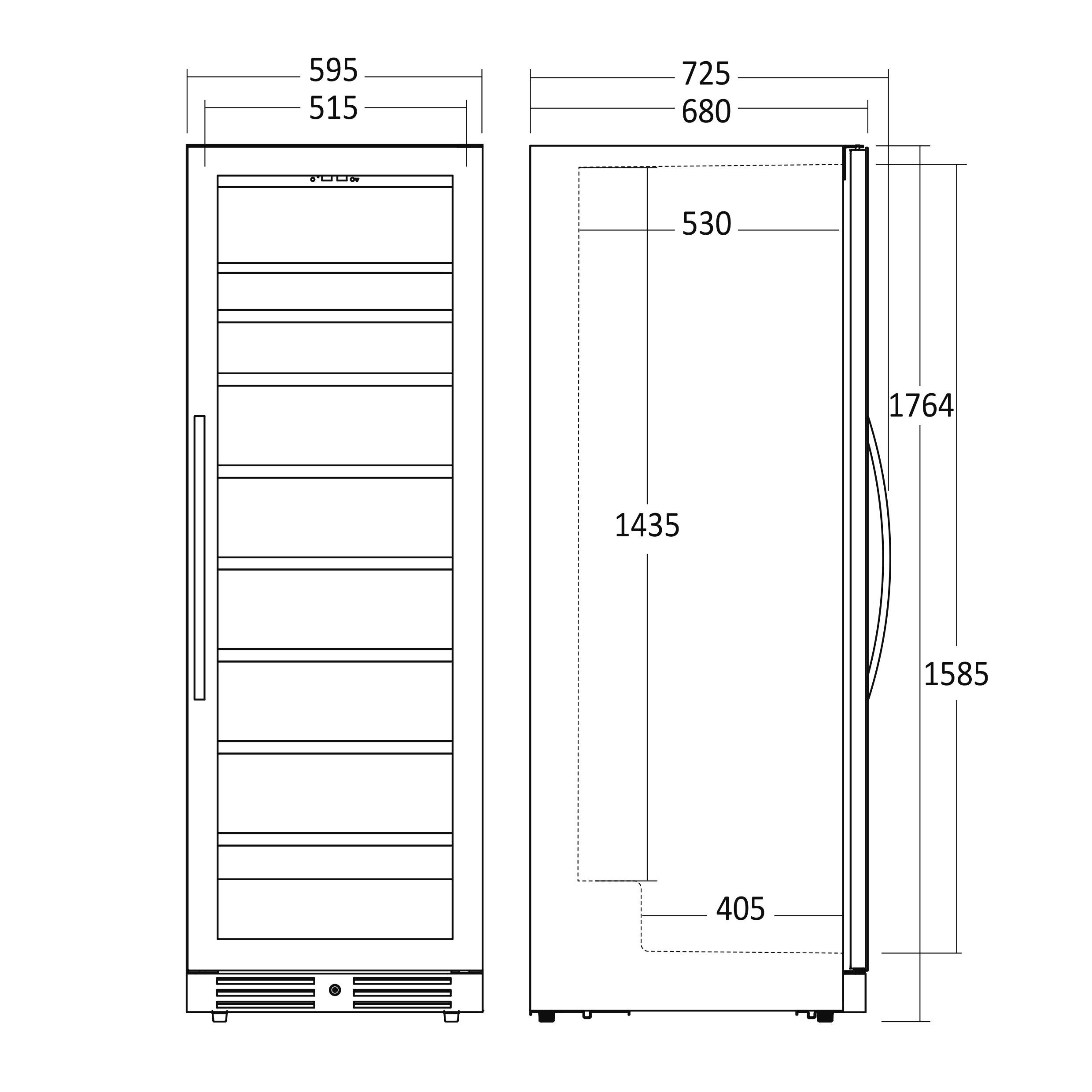 - Produktmål, HxBxD, mm 1764 x 595 x 680