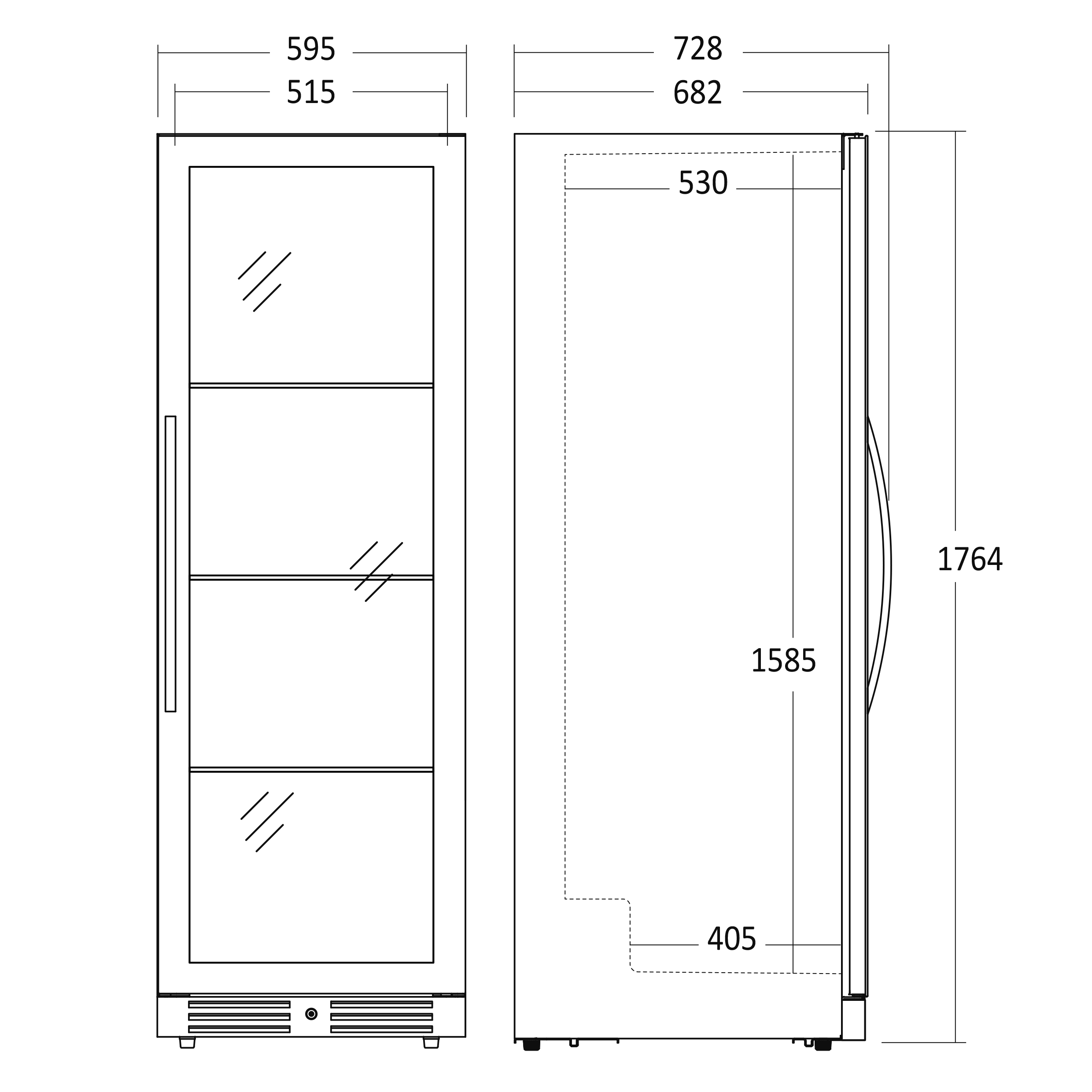 - Produktmål, HxBxD, mm 1764 x 595 x 682