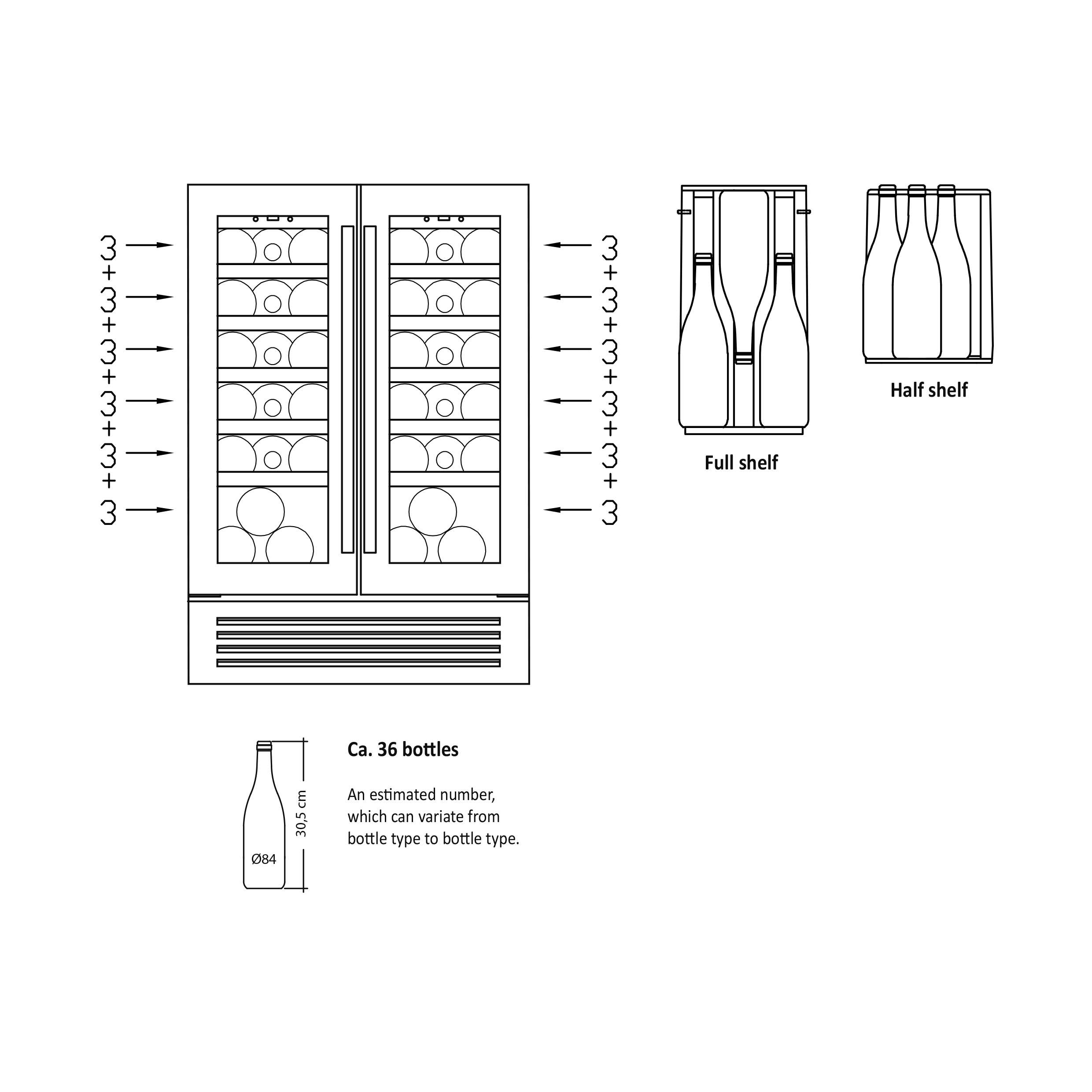 SV 91 X kan bruges til både indbygning og som fritstående vinskab. Skabet har to zoner, kan indstilles mellem 5°C – 18°C uafhængigt af hinanden. Skabet kan rumme 36 flasker fordelt på 12 hylder i bøgetræ med stålfront, heraf 10 udtrækshylder og 2 stationær. Et flot skab til opbevaring af dine flasker.