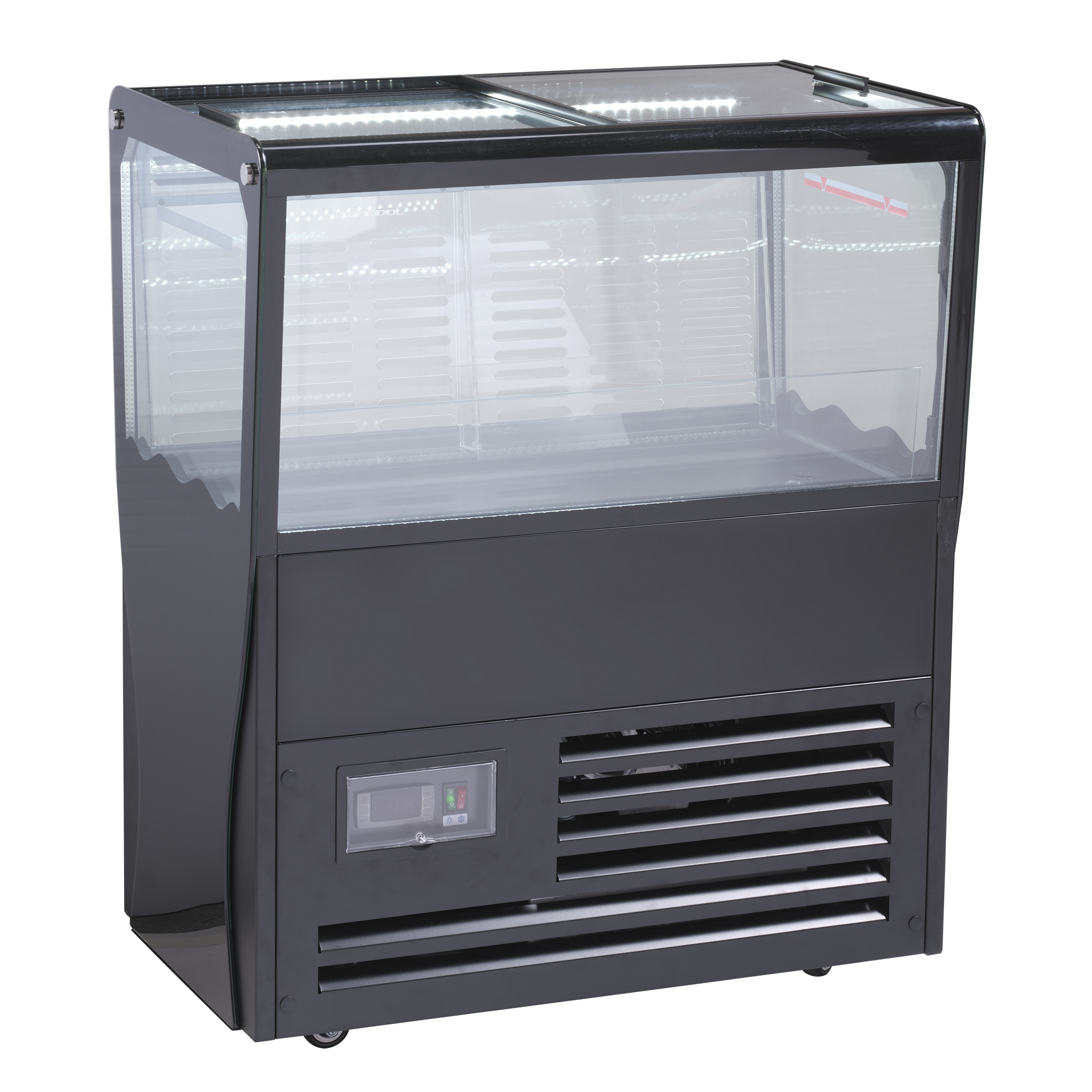 Luftcirkulationssystem säkerställer jämn ventilerad kylfördelning i hela impulskylaren - De transparenta glaslocken håller kvar extra kyla.