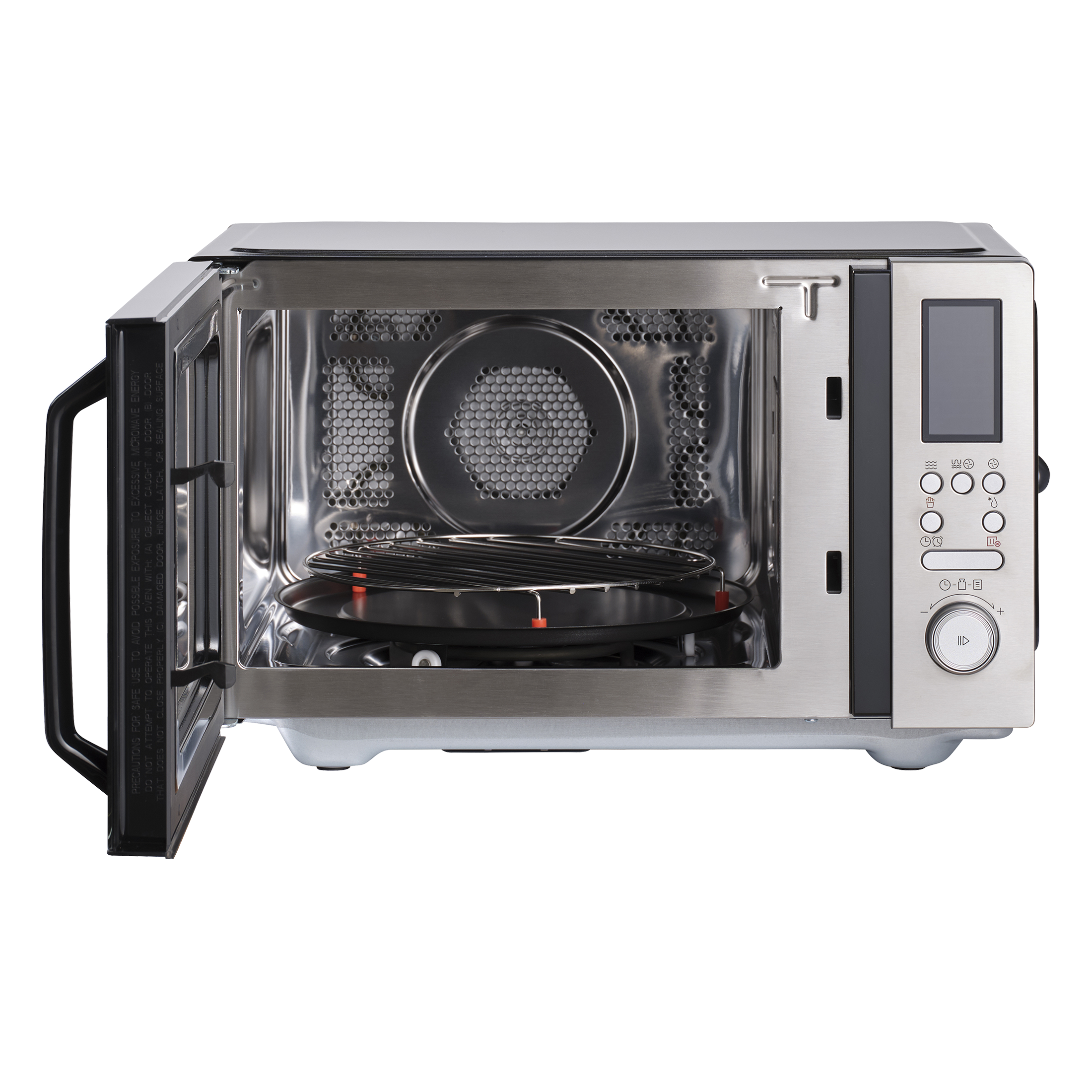 10 automatiska tillagningsmenyer med betoning: inklusive pasta, fisk, ris, kyckling, återuppvärmning, potatis, stekning, kebab, drycker och färska grönsaker. 12 air-fry-menyer, 11 mikrovågsnivåer och 10 temperaturinställningar för konvektion