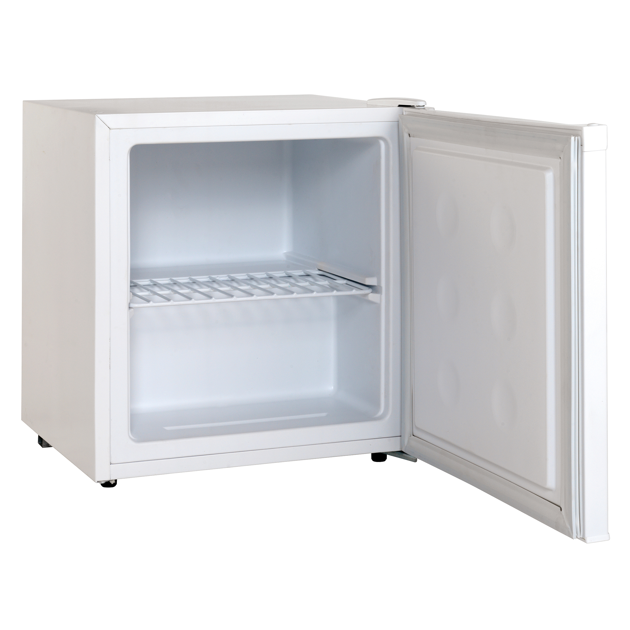 Fyrkantig och praktisk frys med 38 liters kapacitet och statisk frys. SFS56WE-frysen är idealisk för små utrymmen, t.ex. studentrummet eller stugan. Den fristående frysen levereras med 1 hylla och justerbara fötter, så att den kan stå platt på alla ytor. Skåpdörren öppnas åt höger, men dörren kan också vändas, så att skåpet är flexibelt och kan placeras i alla rum. SFS56WE är fristående och kan med sin storlek även stå på ett bord eller en hylla.