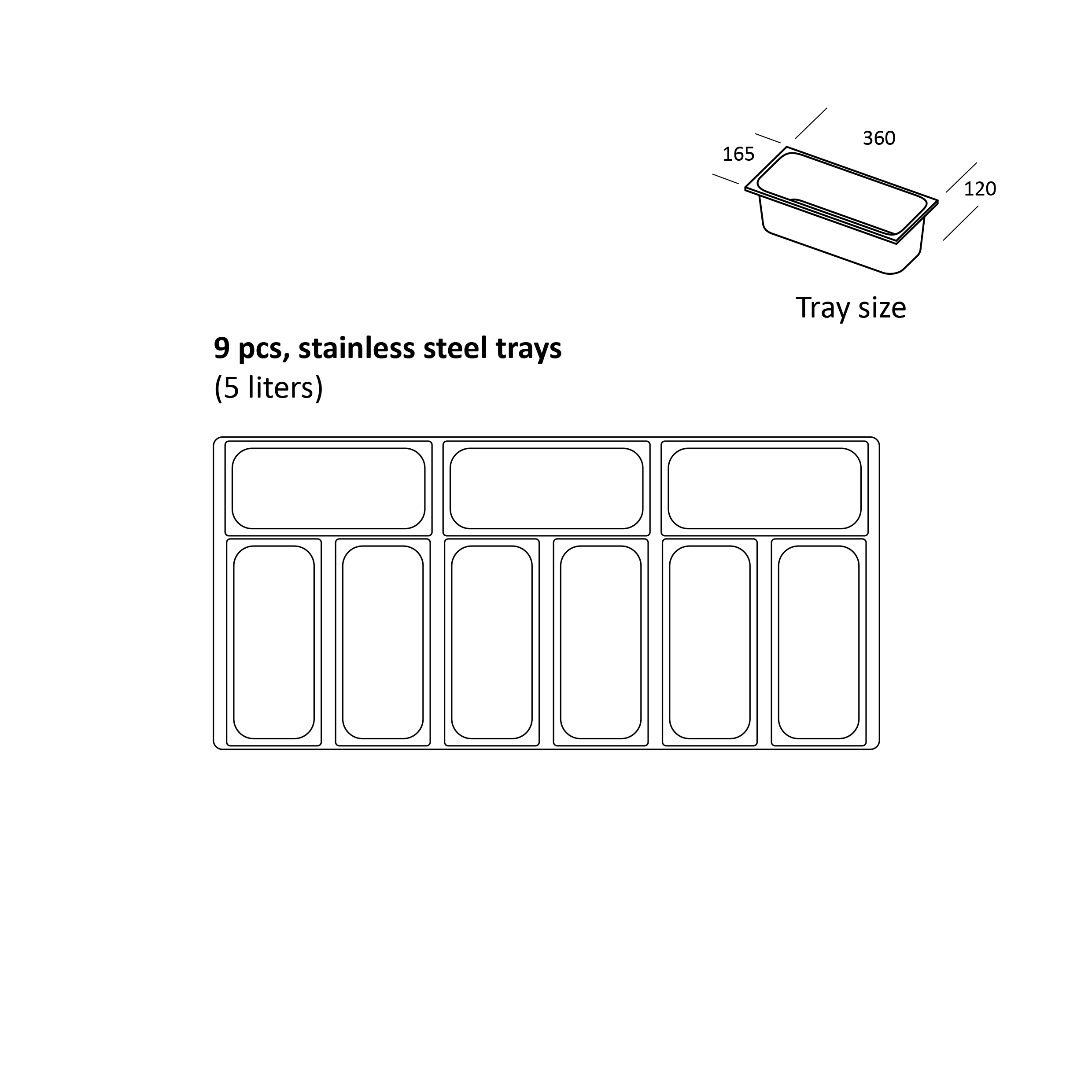 - ■ Inkluderar en komplett uppsättning 9 st, 5L Napoli-glasskantiner i rostfritt stål