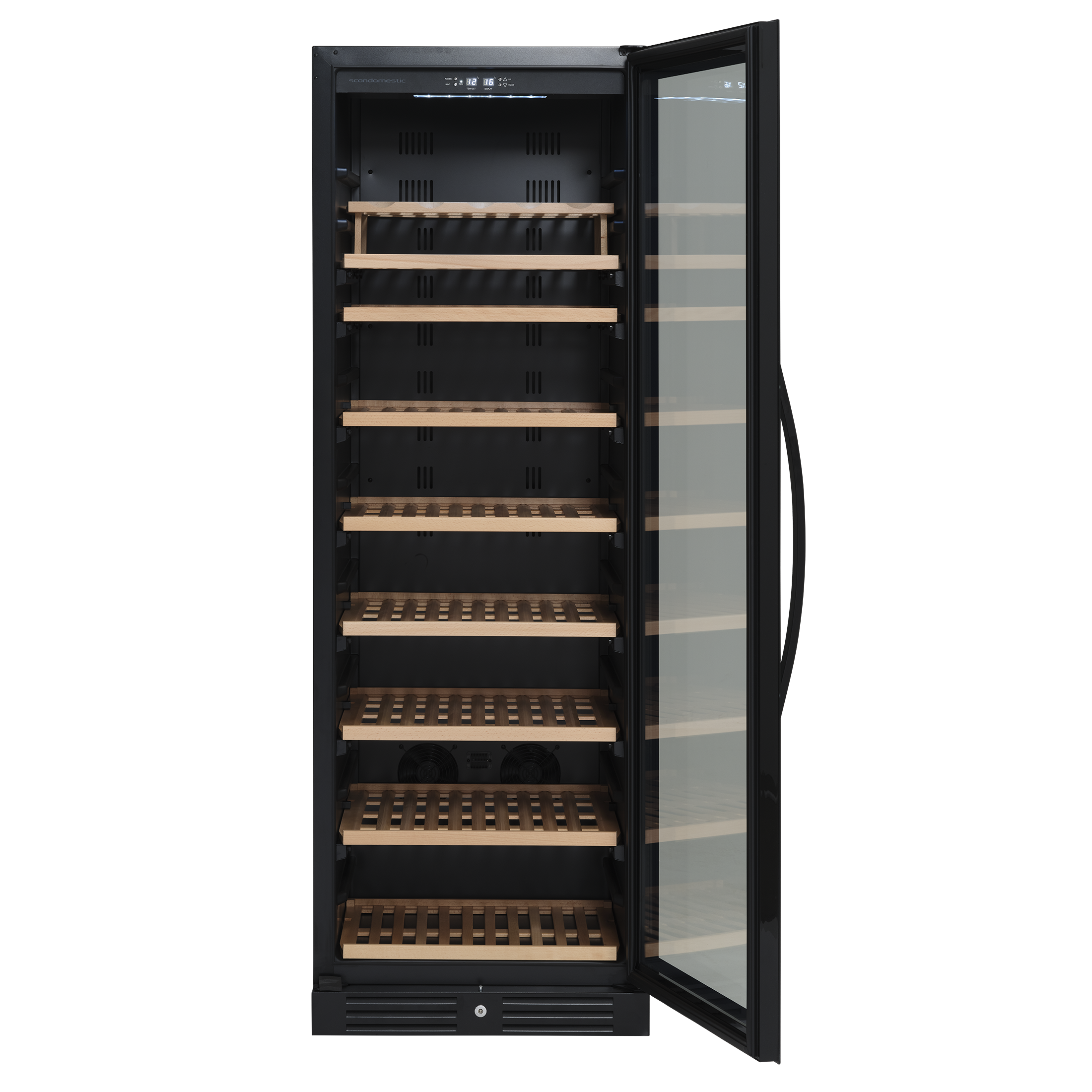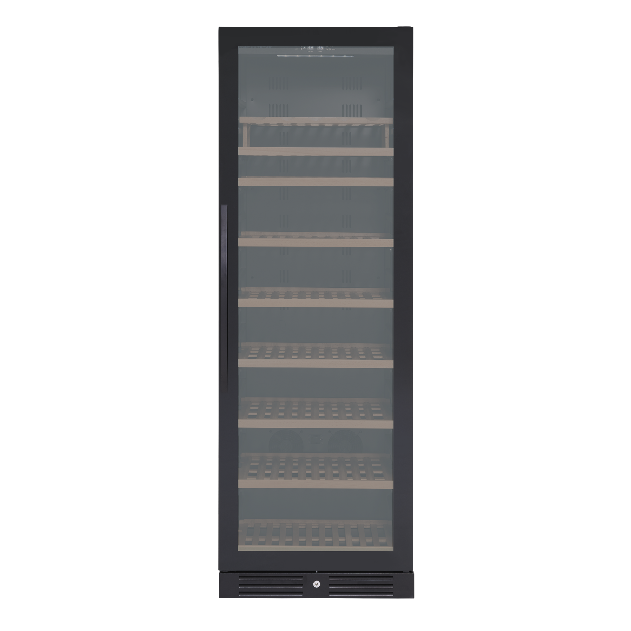 1 horisontellt LED-ljus ger bra ljus och representerar vinet vackert. Skåpet har ett intelligent luftcirkulationssystem som säkerställer perfekt ventilerad, vibrationsfri kylning i hela skåpet.