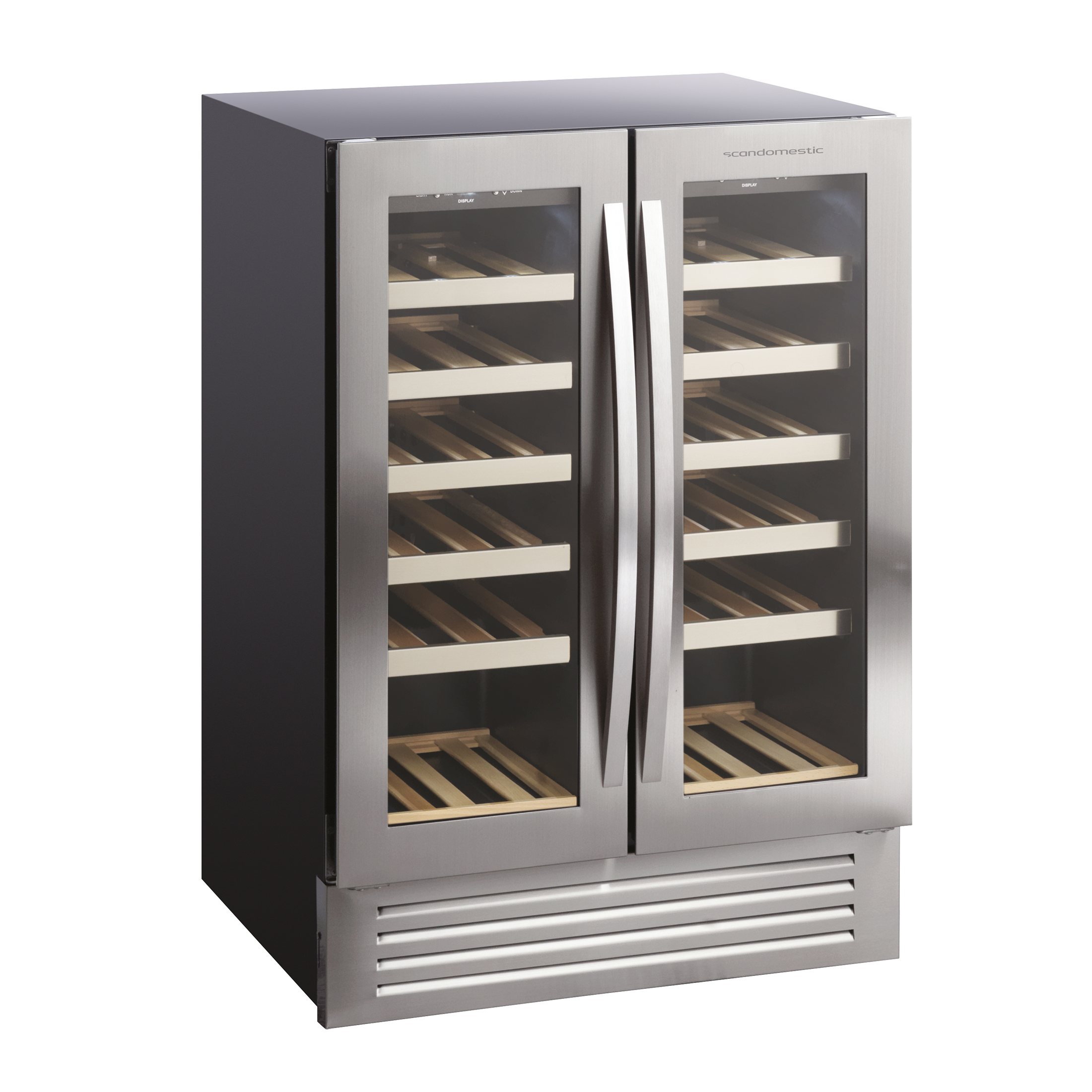 SV 91 X kan användas som ett inbyggt eller fristående vinskåp. Skåpet har två zoner som kan ställas in mellan 5°C - 18°C oberoende av varandra. Skåpet rymmer 36 flaskor på 12 hyllor i bokträ med stålfront, inklusive 10 utdragbara hyllor och 2 stationära hyllor. Ett vackert skåp för förvaring av dina flaskor.